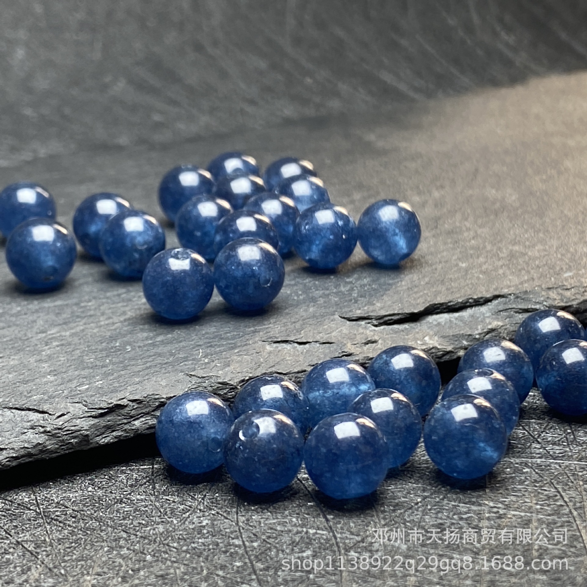 蓝碧玺玉髓散珠深蓝圆珠饰品串珠水晶半成品配件diy手串材料批发