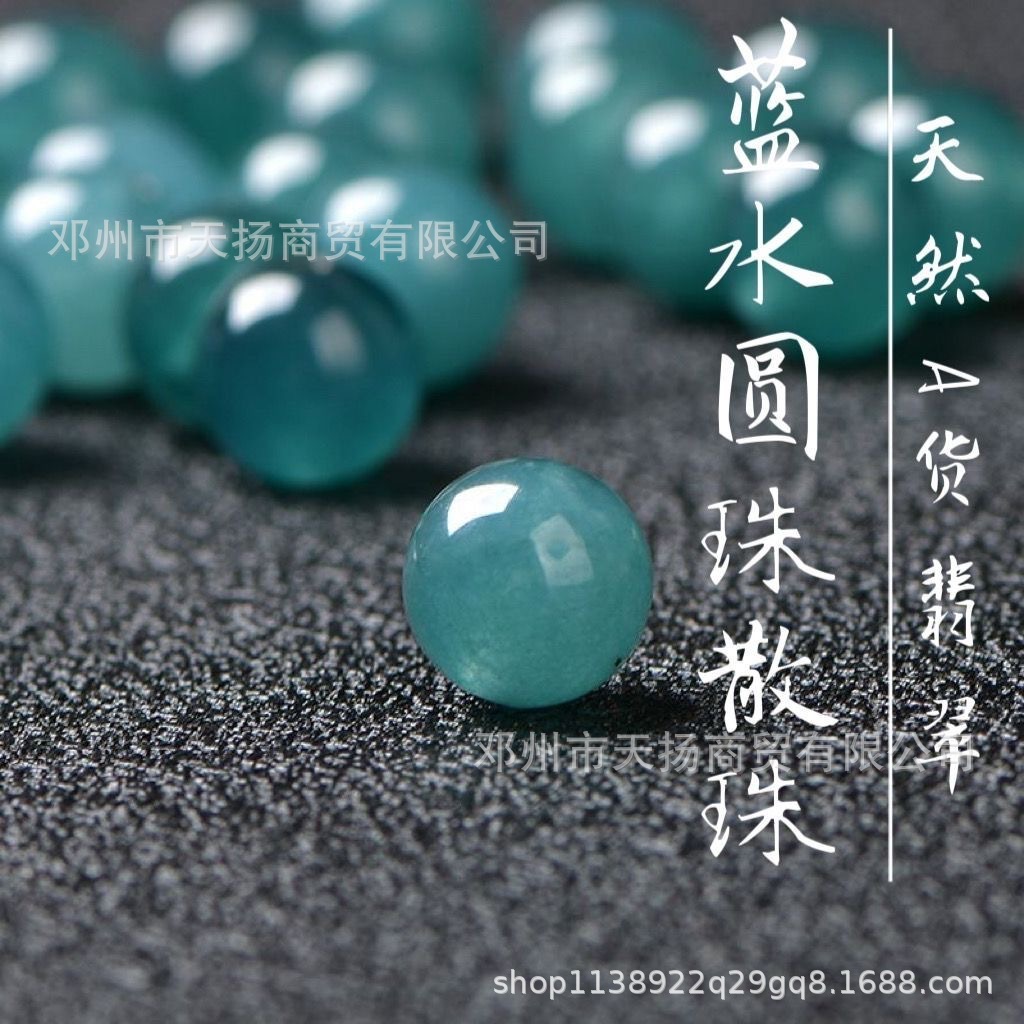 翡翠危険材料藍水円珠A品氷種アクセサリービーズ半製品手作りdiy手串ネックレス編み散ロット