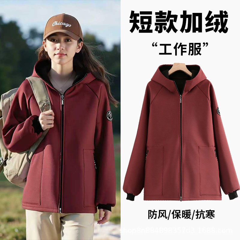 秋冬ベルベット厚手ブラウス男性外着出勤作業服エプロン短い保温ファッションコート飲食女性