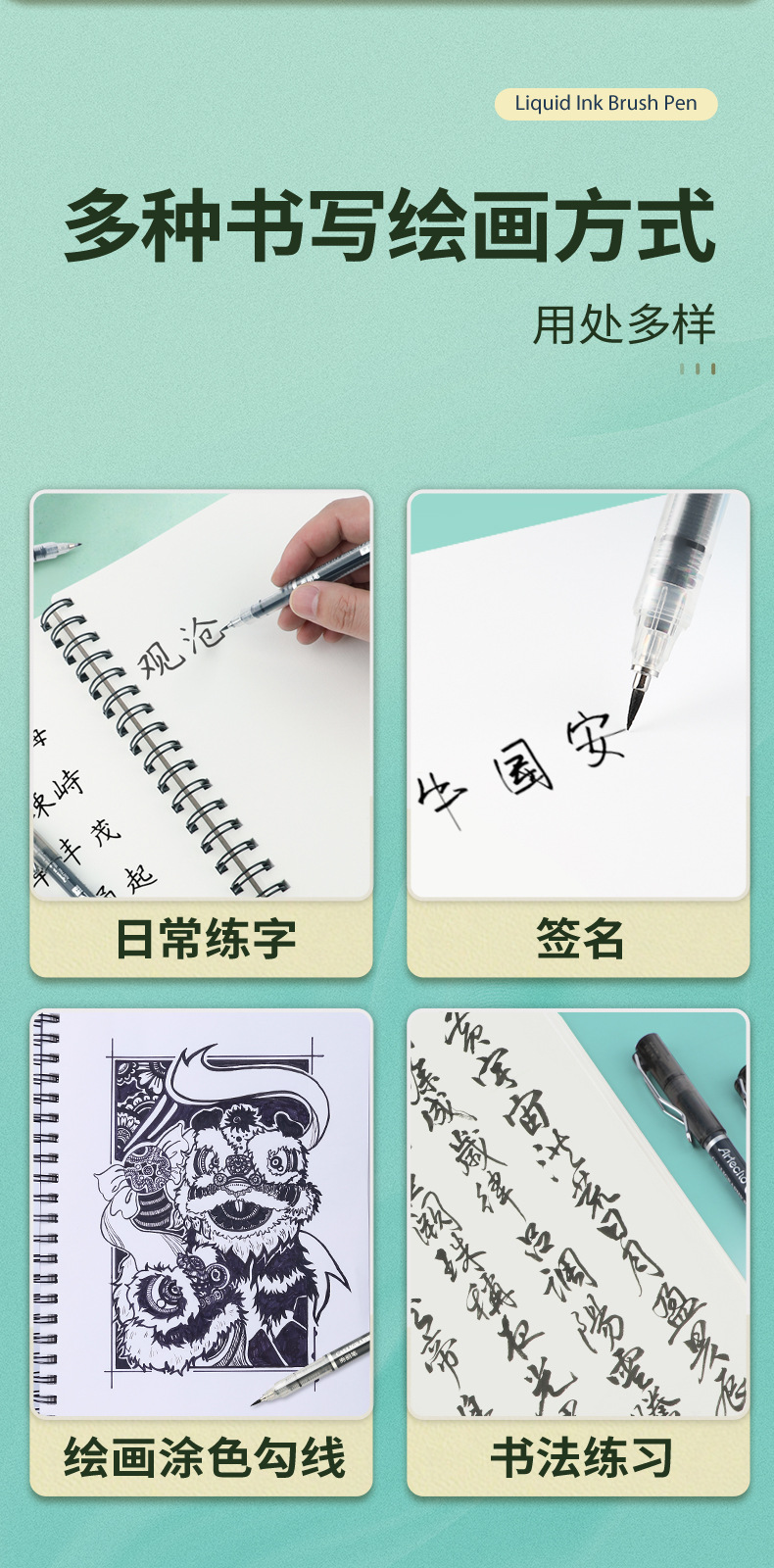 【墨追加可能】写経美容ペン、金書道練習、極細大楷書、中楷書、小楷書、ソフトヘッド書道ペン、招待状