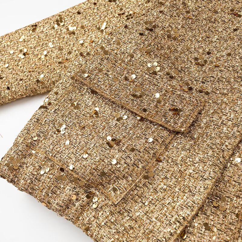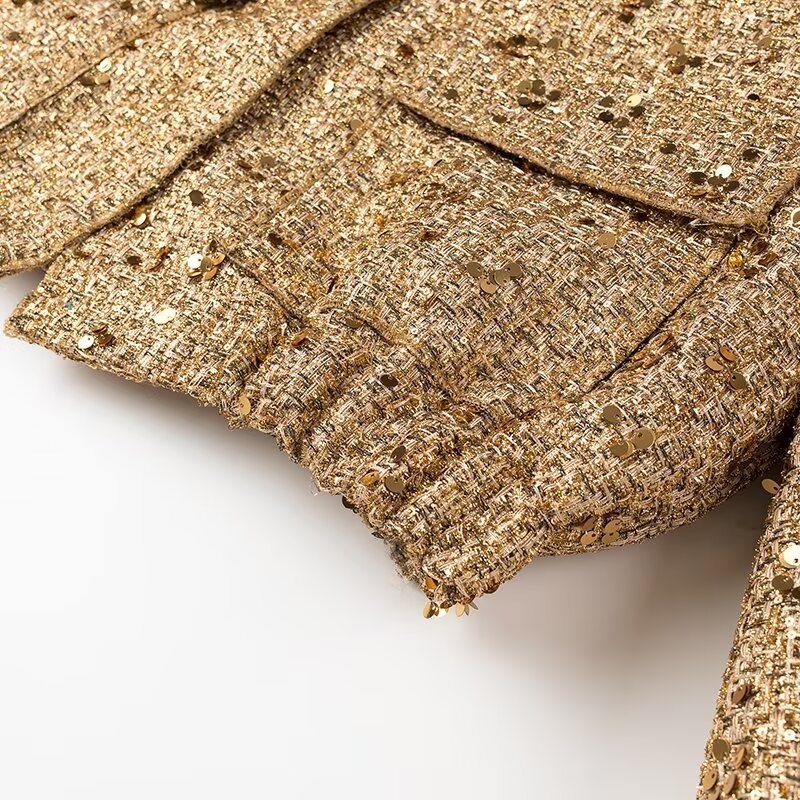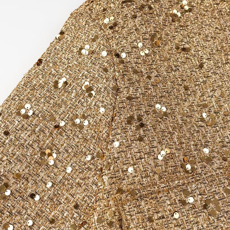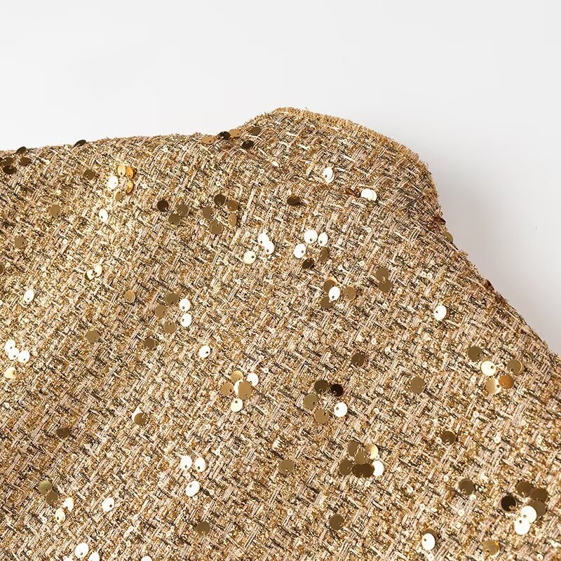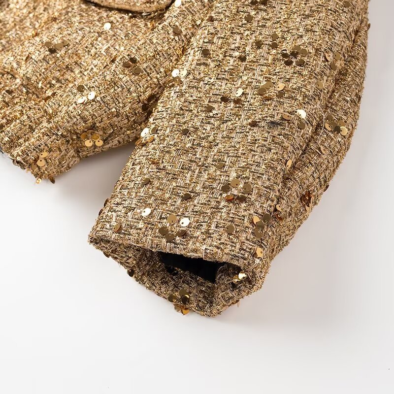 国境を越えた欧米の婦人服の速売通の爆発金の珠片は小さい襟のジャケットのコートを飾ります。