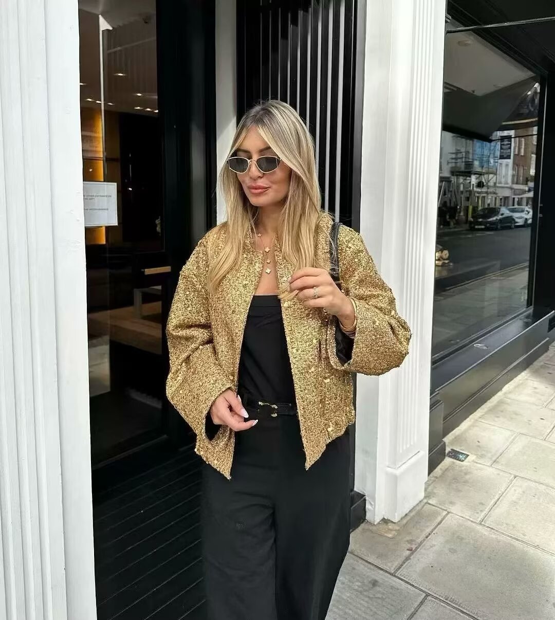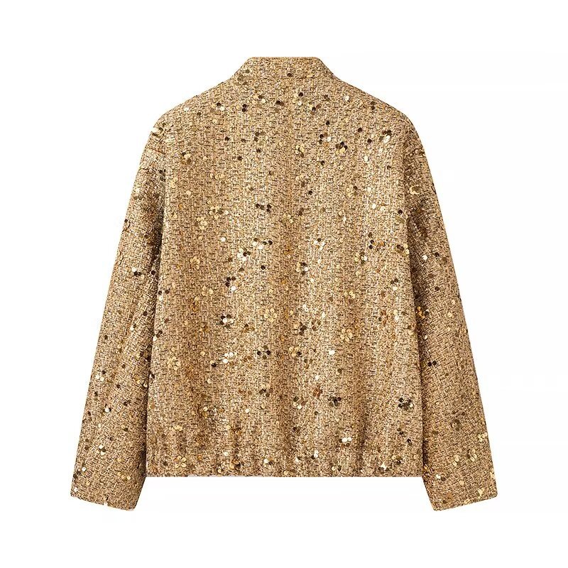 ザクロスボーダー女装卸売欧米風秋新作立襟スパンコールゆったりカジュアルファッションコンビネーションジャケット
