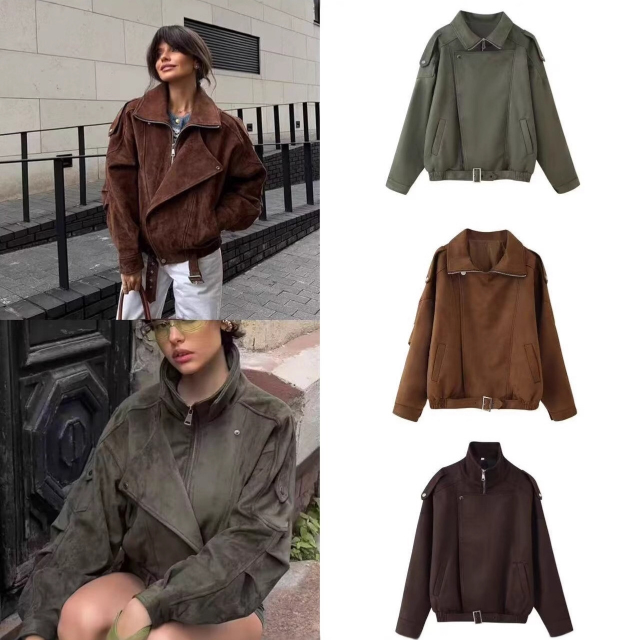 2025新型のゆったりとしたレトロなファッションのスパンコールジャケットのファスナー長袖コート