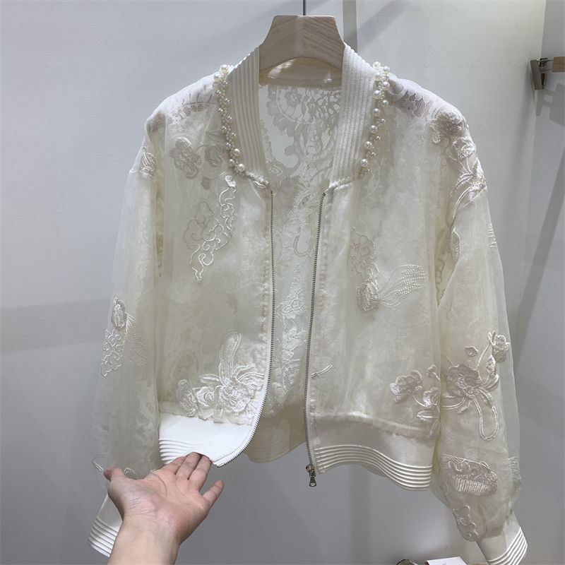 夏服新中国風高ランクビーズ刺繍日焼け止めコート丸襟デザイン感野球服上着