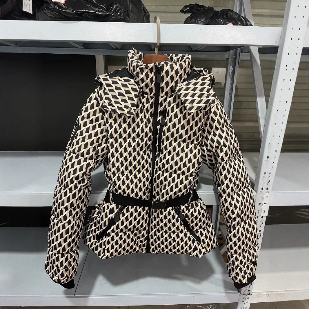 ザクロスボーダー女装卸売欧米風スキーシリーズ立襟フード付きベルト保温ダウン綿綿服コート