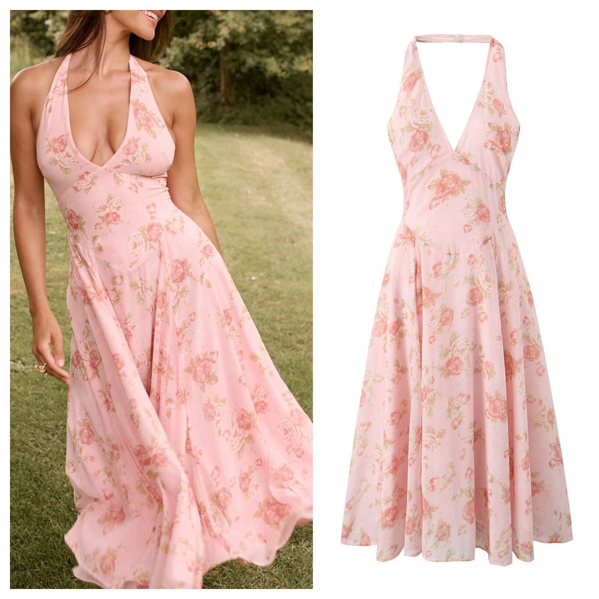 ZAクロスボーダー婦人服卸売り純粋な欲セクシーな首のvネックのワンピースの女性のフランス式の気質の修身の甘いa字のスカート