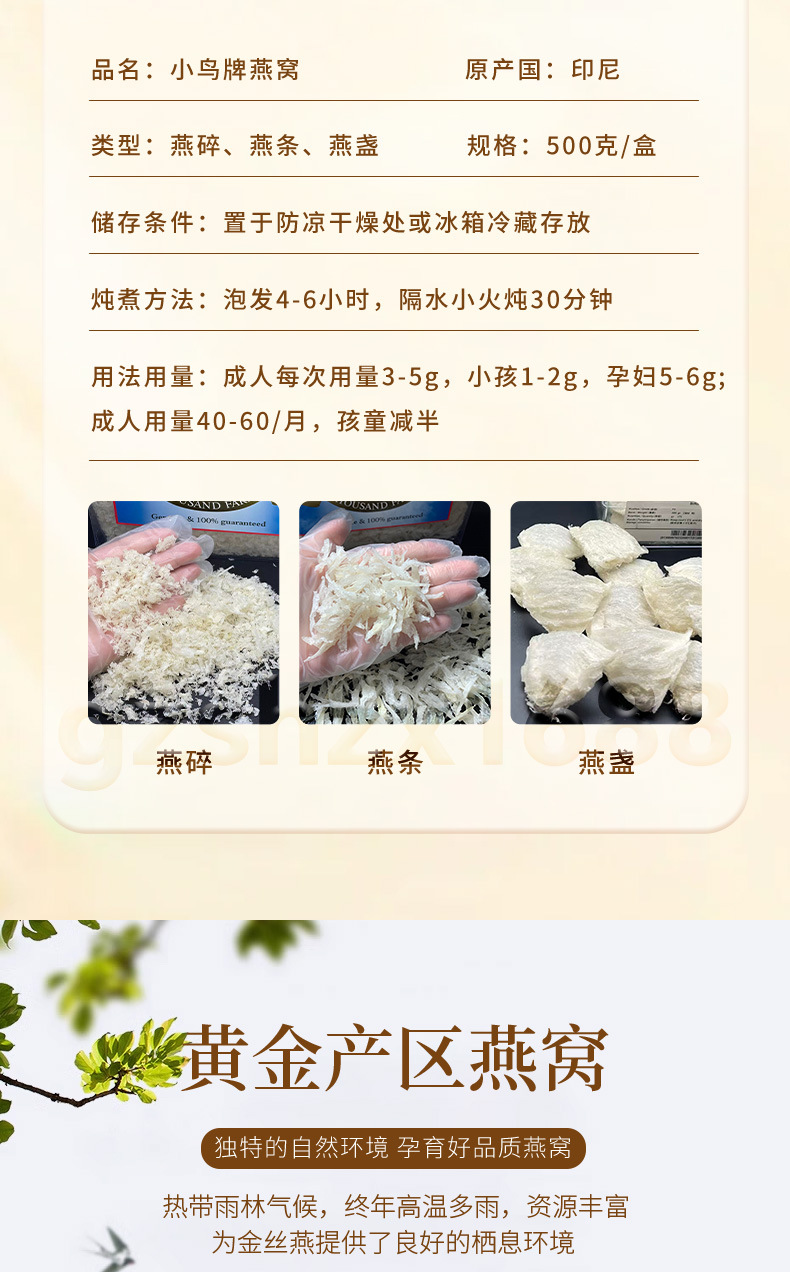 鳥牌燕窩(乾燥燕窩、燕条、燕片)妊婦滋養補助食品、生煮込み原料、乾物卸売、生煮込み原料