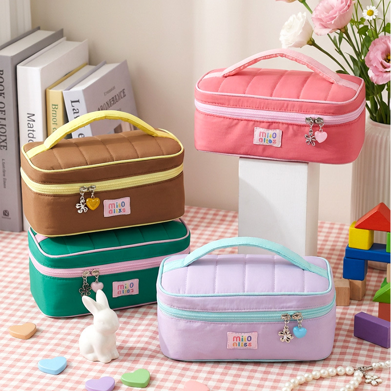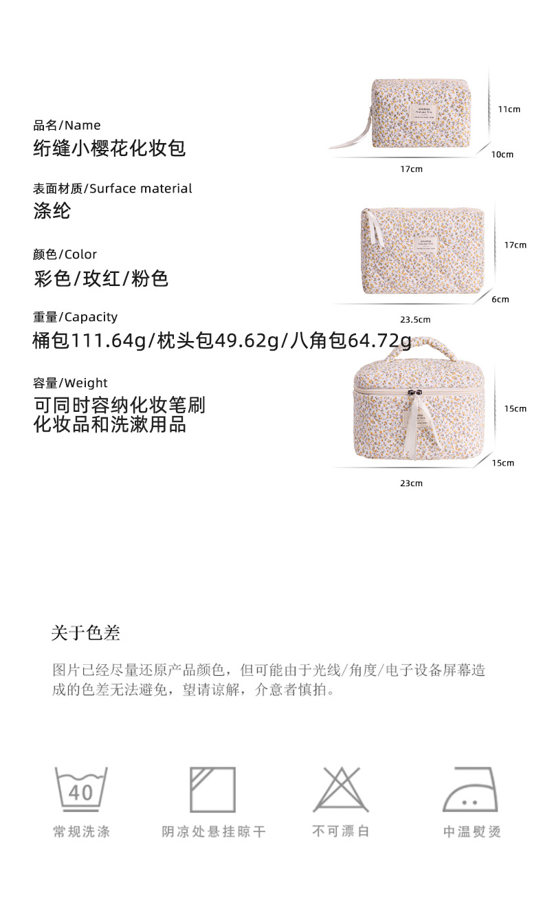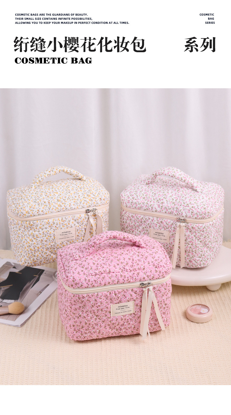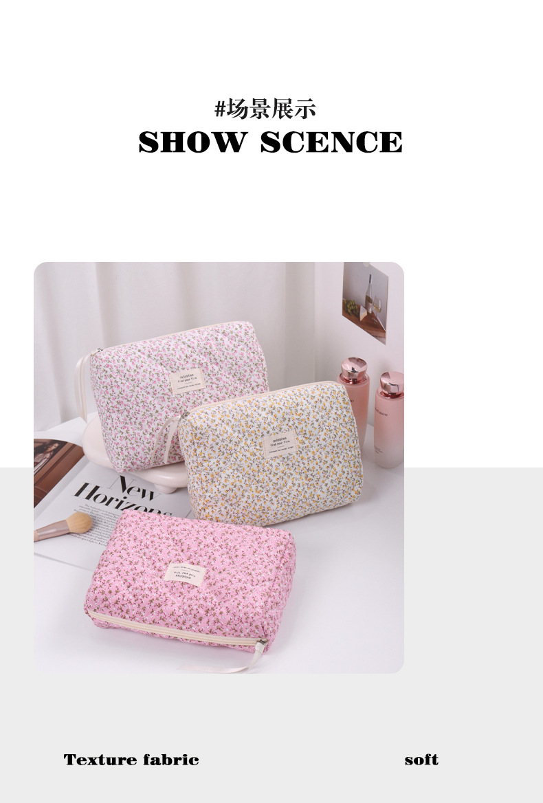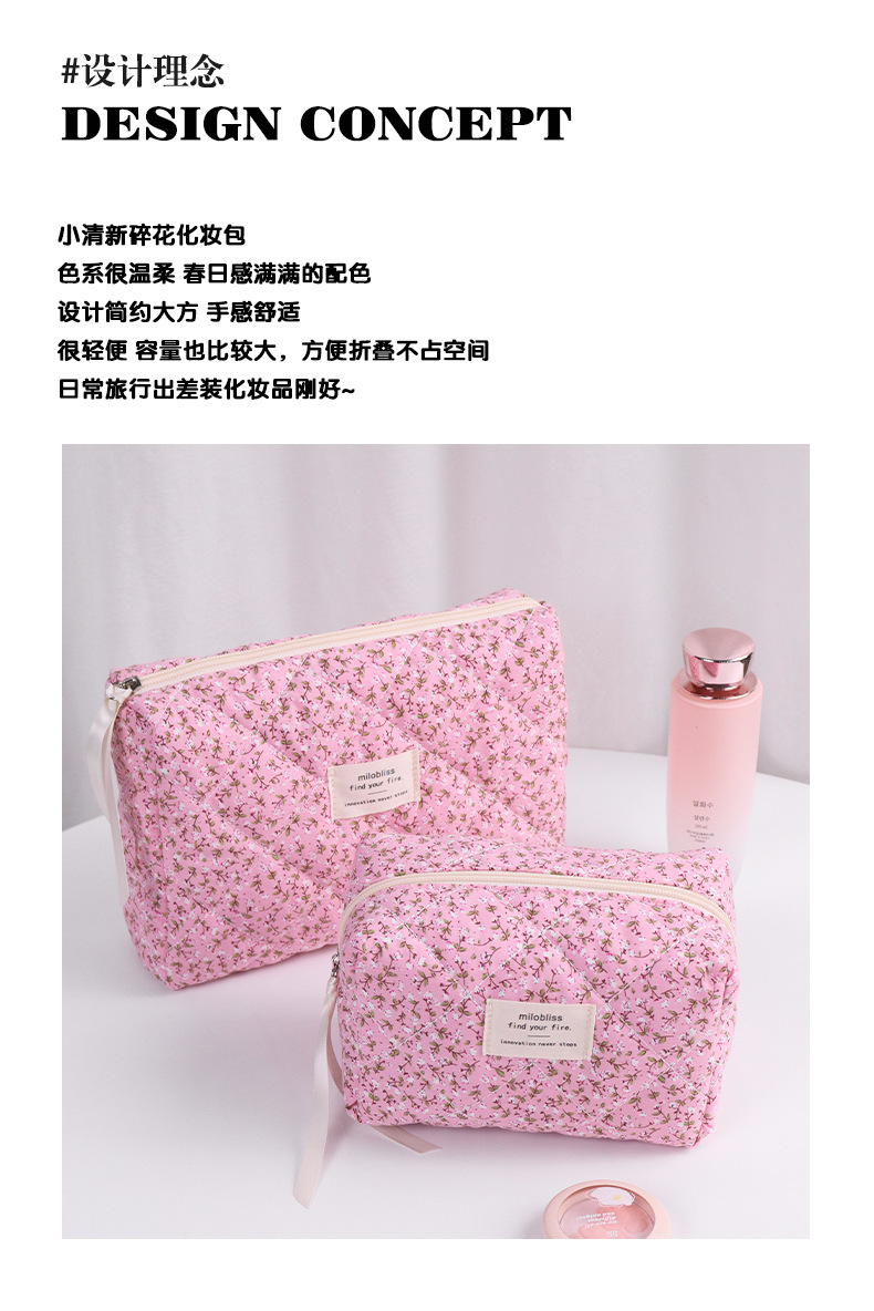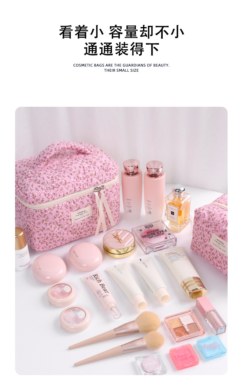 手提化妆包大容量小碎花收纳便携绗缝加棉可爱印花ins旅行学生包