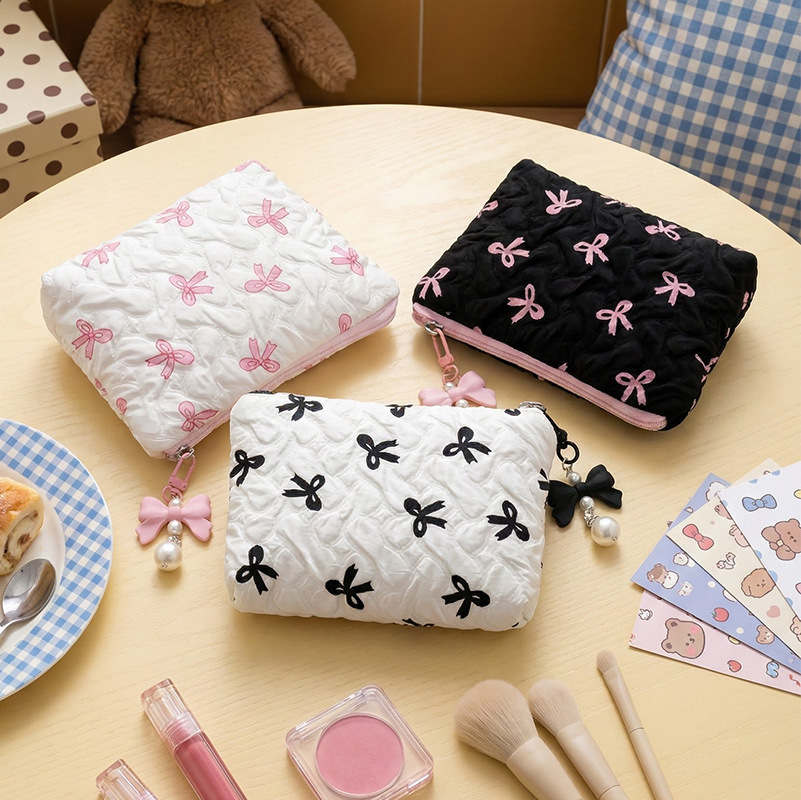 国境を越えた人気のリボン化粧品バッグ、ニッチなデザインの収納バッグ、高見えするイン、かわいい化粧品バッグ、高級感