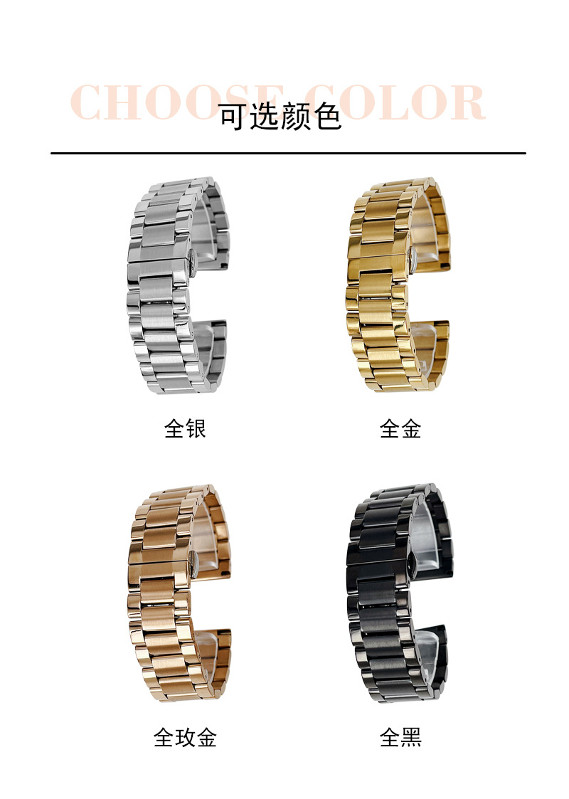 腕時計鋼帯男女ステンレスバンド金属蝶ボタン代用華為dwカード家浪家精鋼時計チェーン