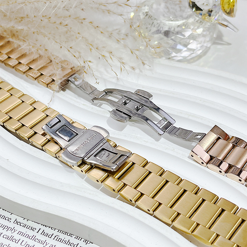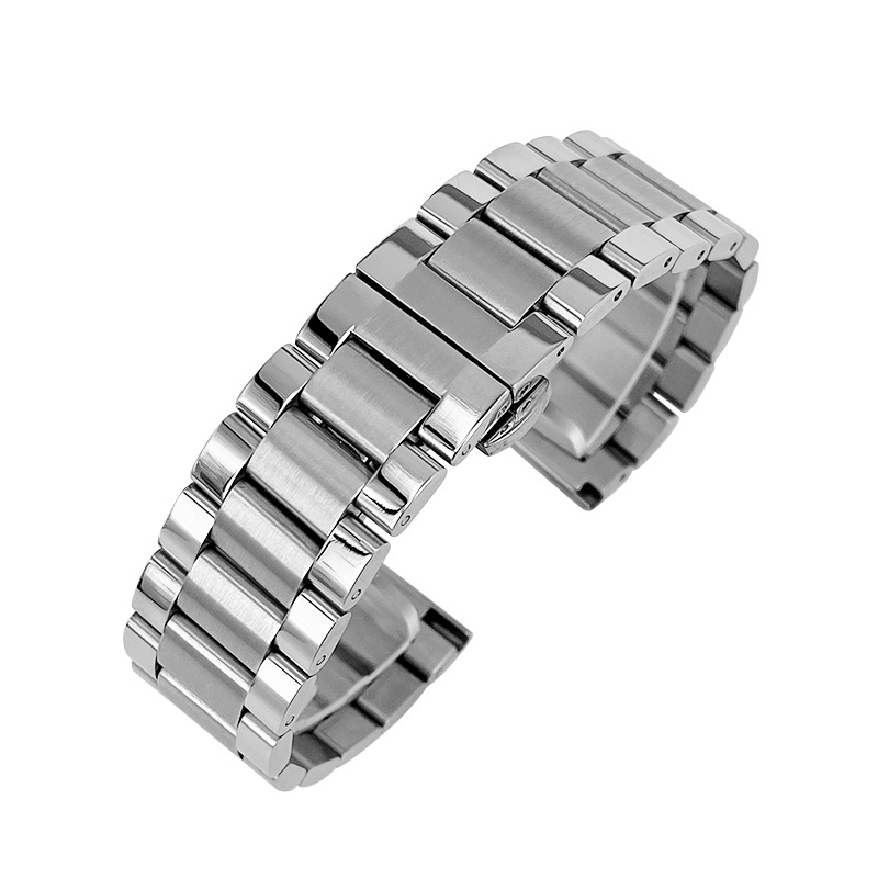 ステンレス時計バンド五珠中実精鋼帯蝶双ボタン腕時計バンド腕時計部品12-22mm