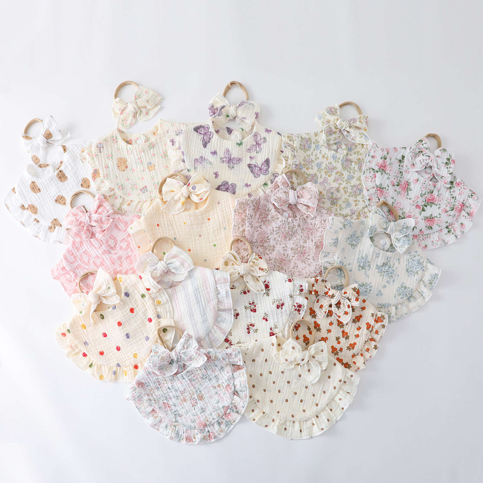 【品名】纯棉兔耳朵花边围嘴围兜【颜色】15色