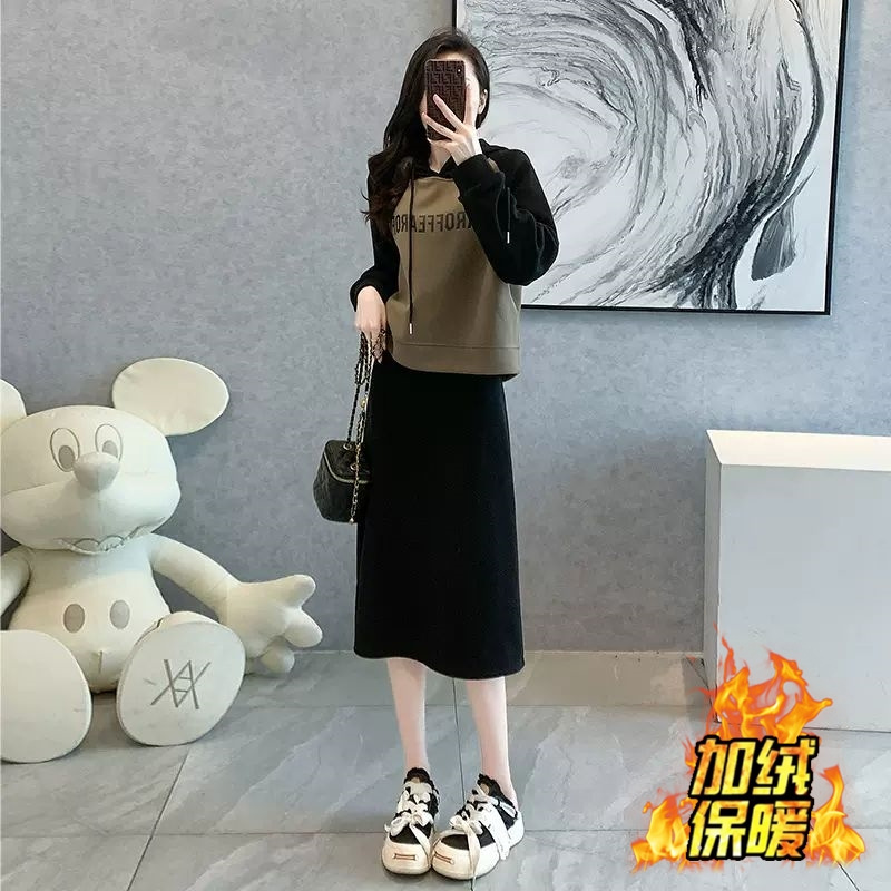 韓国版カジュアルスポーツスーツ秋冬ベルベットスカートセットオープンスカートデザイン感ファッション2点セット