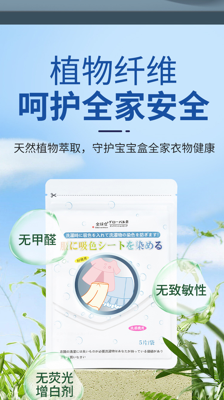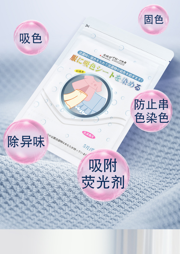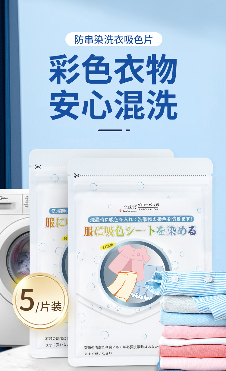 染色防止洗濯シート吸色シート洗濯機の服を混ぜて洗濯します。