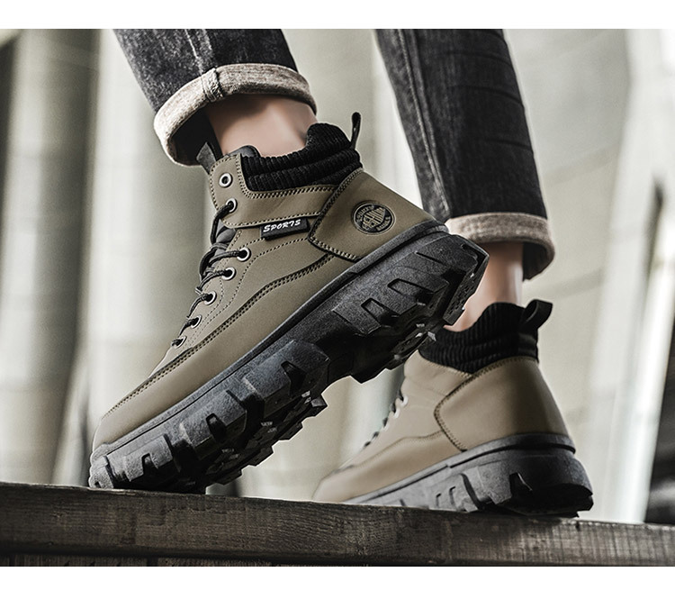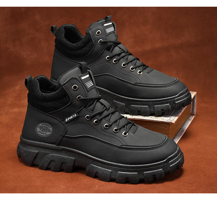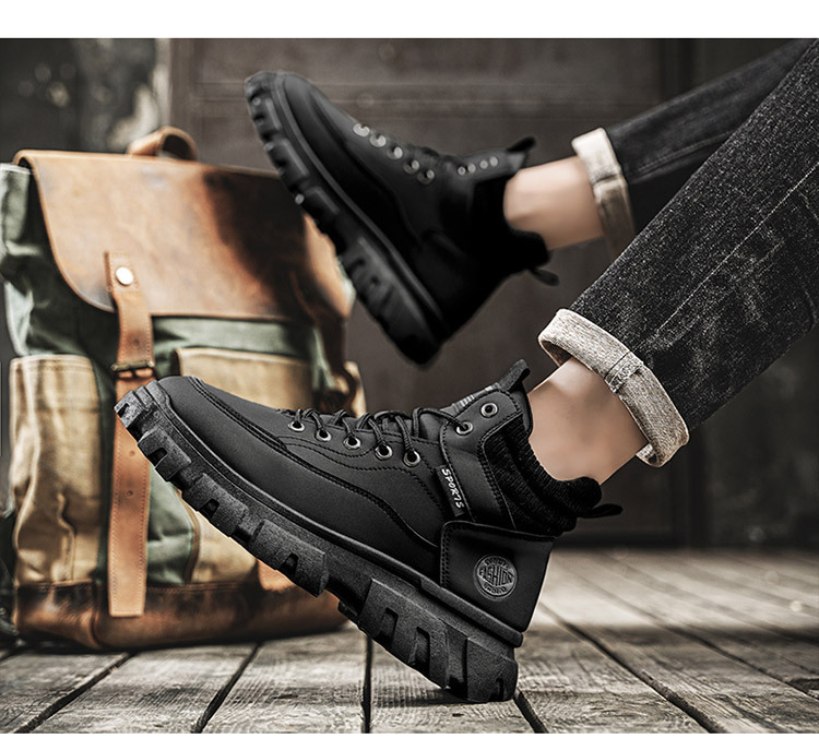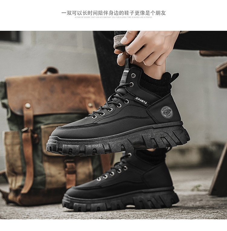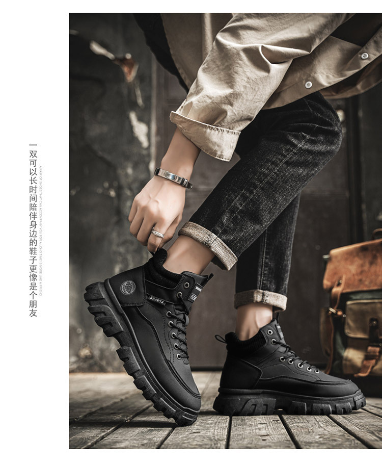 高帮男鞋秋季百搭休闲皮面工装鞋板鞋青少年登山运动厚底马丁靴男