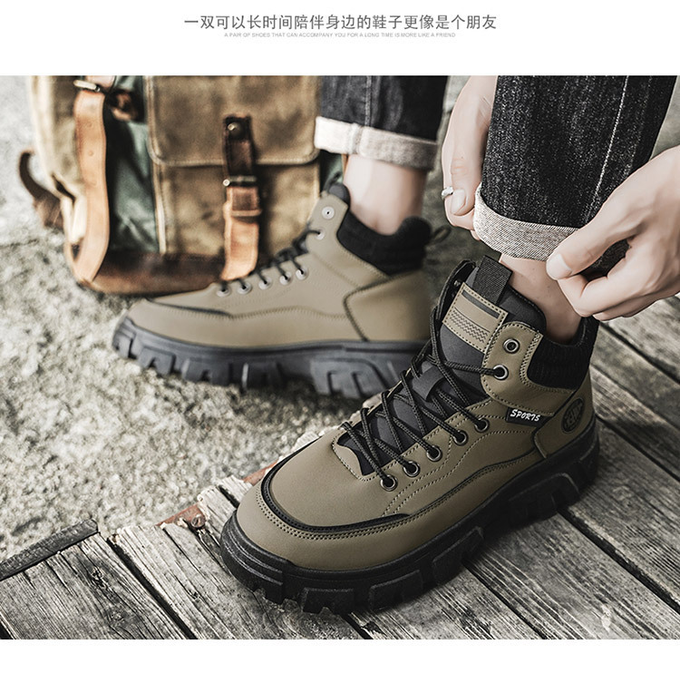 マーティンブーツの男性靴の秋の新型の通気性の高い靴の男性の韓国版は厚い底の登山のショートブーツを合わせます。