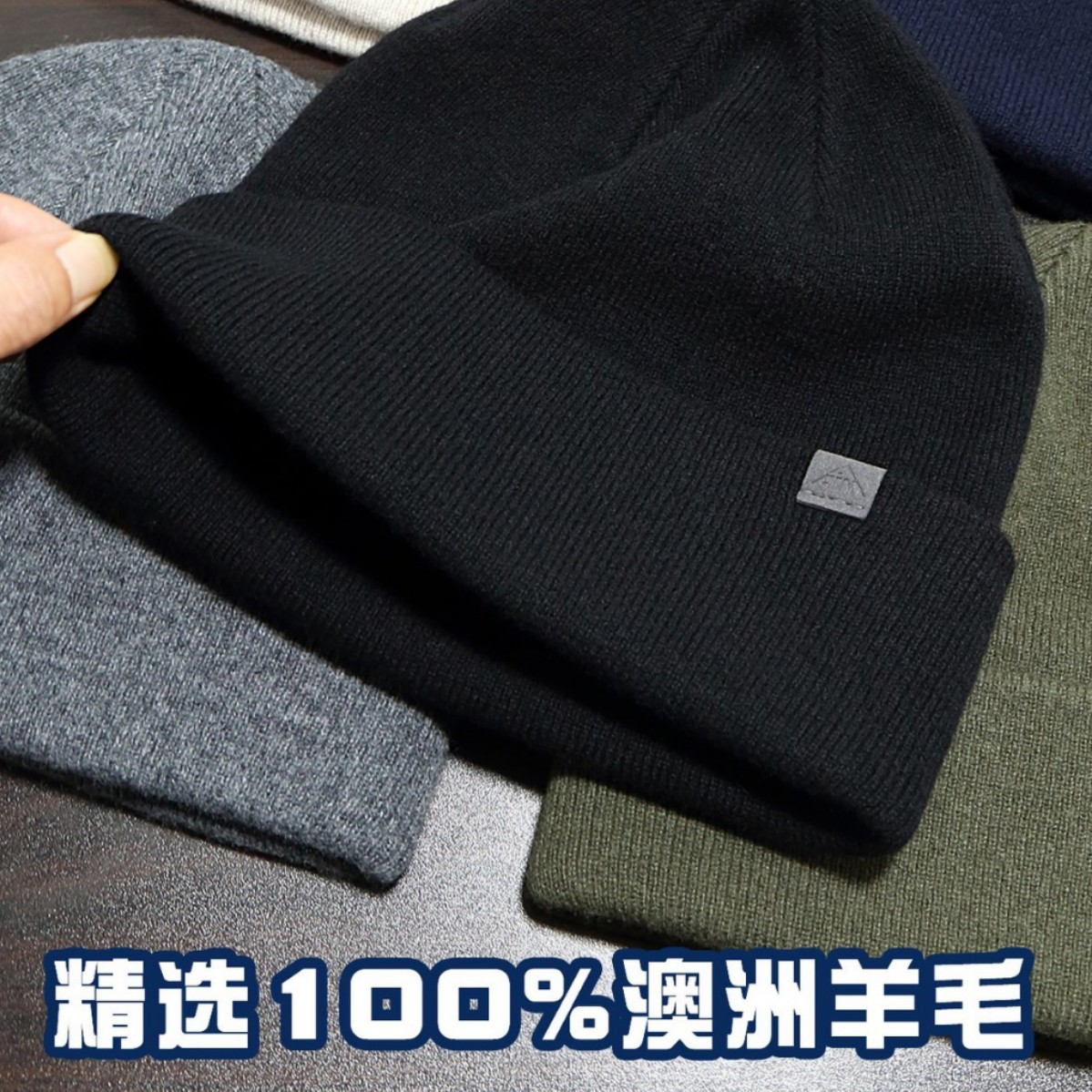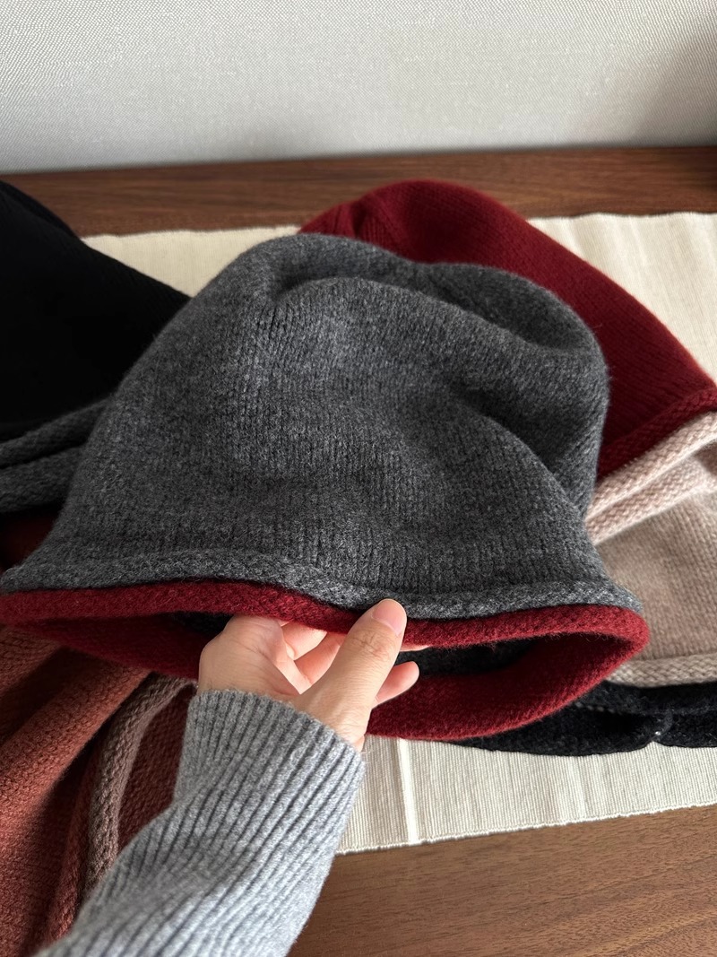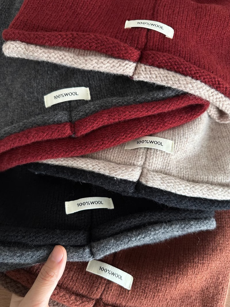 100%纯羊毛针织帽无接缝双层加厚护耳保暖毛线帽子男女包头帽冷帽