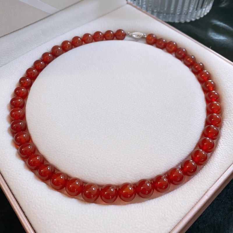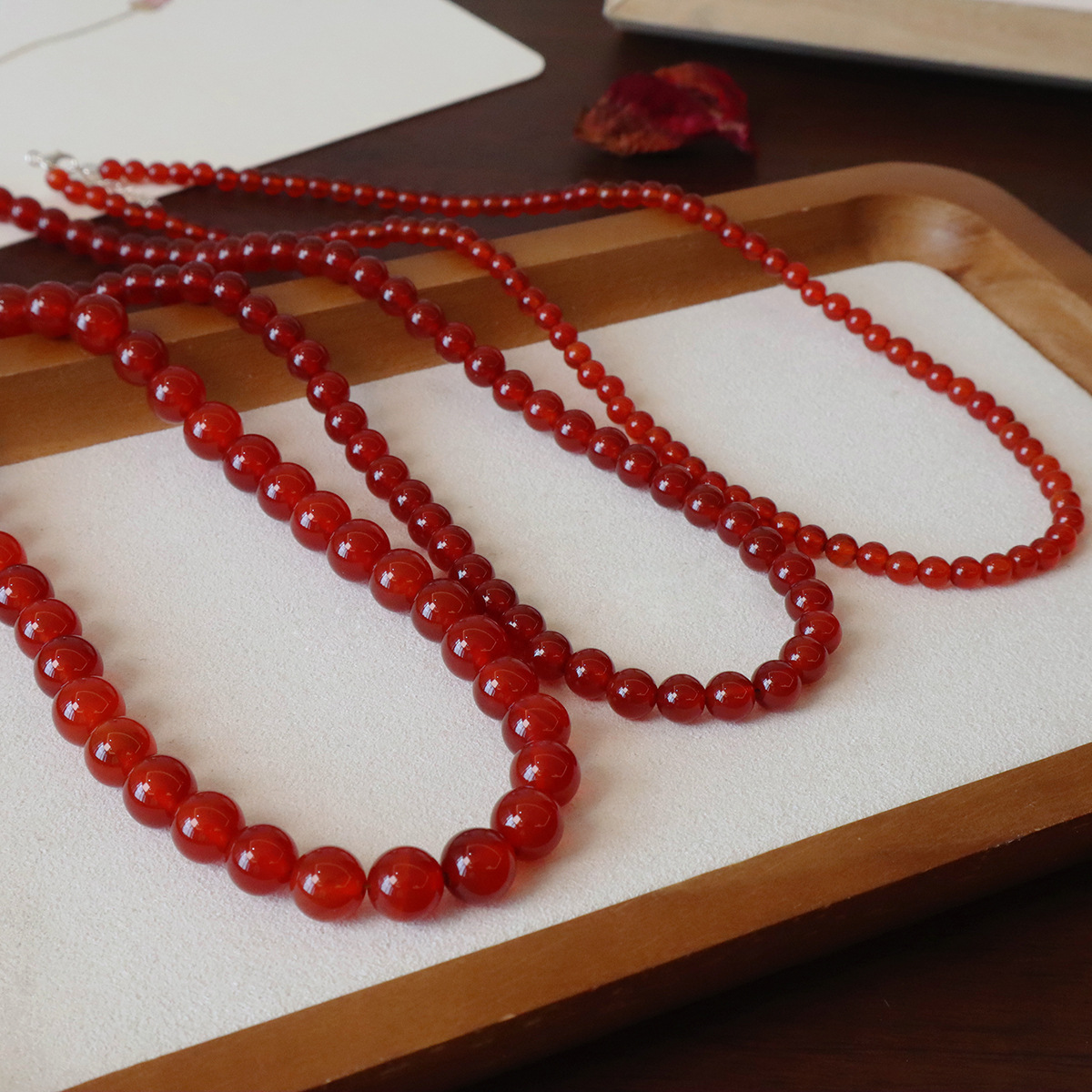 7a天然紅瑪瑙ネックレス数珠クリスマス新年赤中国式首鎖小衆高級感女性モデル鎖骨鎖