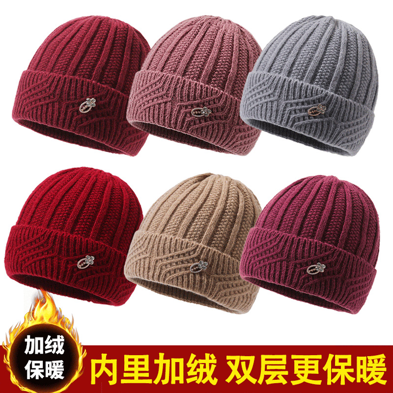 批发新款妈妈加厚保暖冬季帽子防寒奶奶中老年人针织毛线帽子女