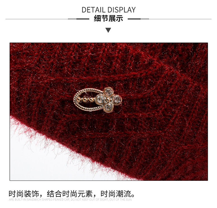 针织帽鹿毛绒保暖加绒妈妈中老年人帽子女冬季奶奶加厚毛线老人帽