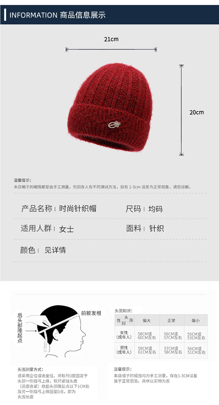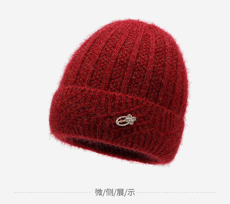 中老年帽子女冬季新款加厚保暖毛线针织帽时尚洋气加绒护耳套头帽