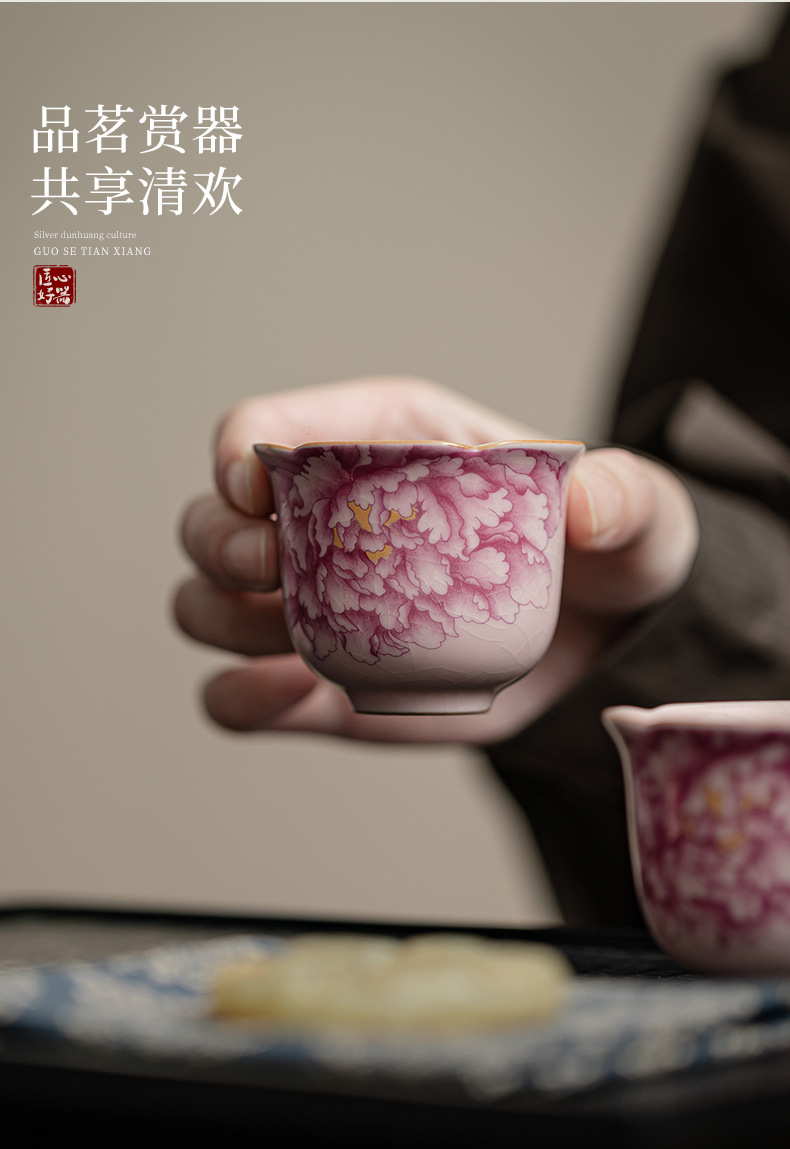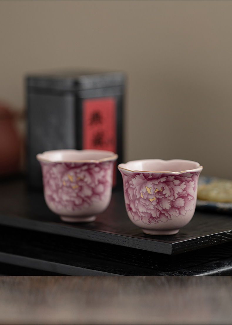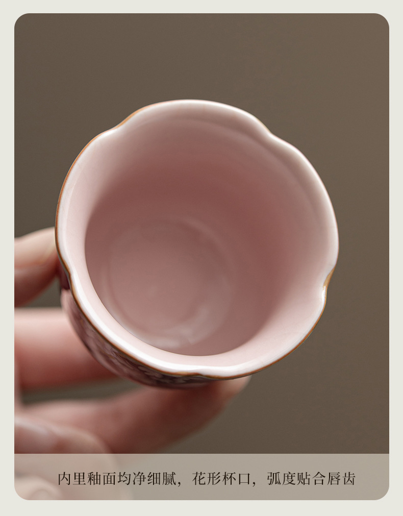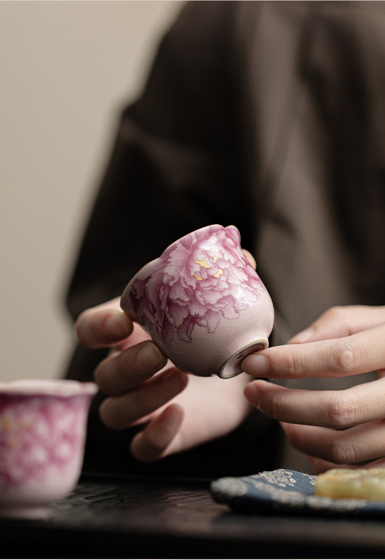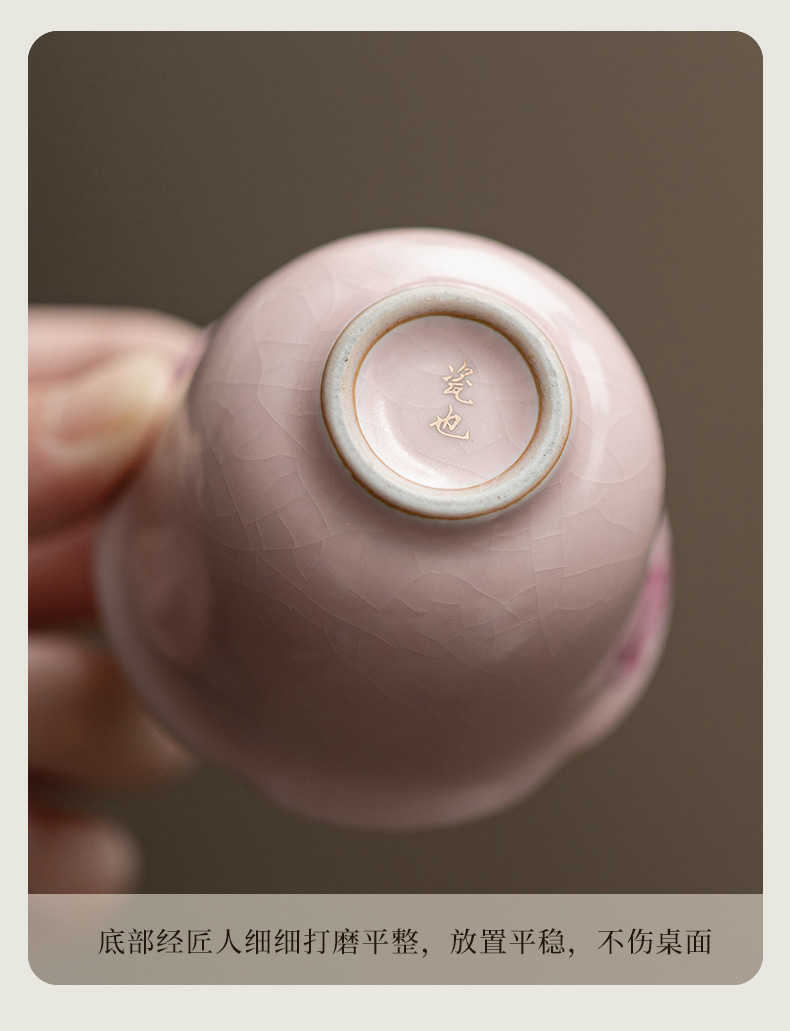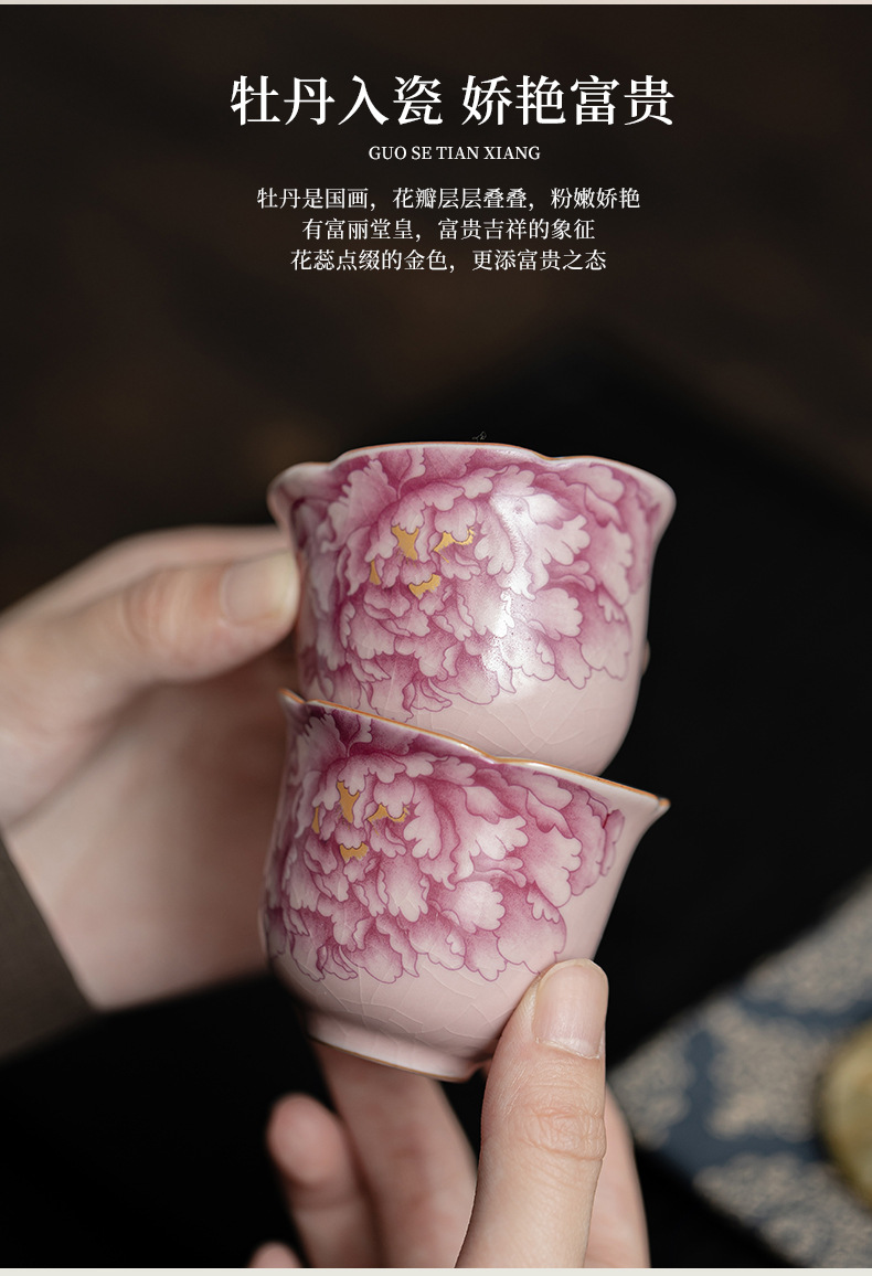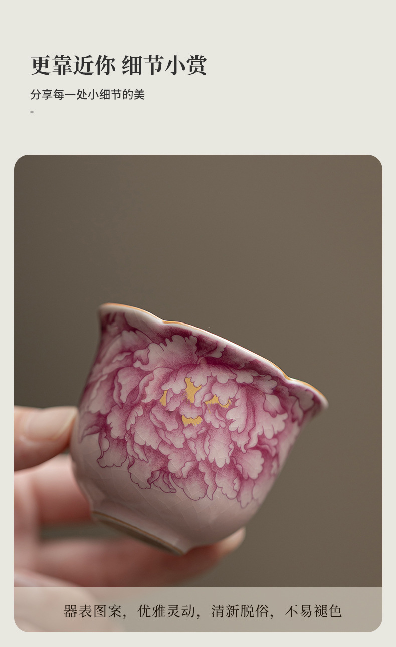 景徳鎮牡丹粉汝茶杯陶磁器茶器開片主人杯客杯品茗杯家庭用工夫茶器