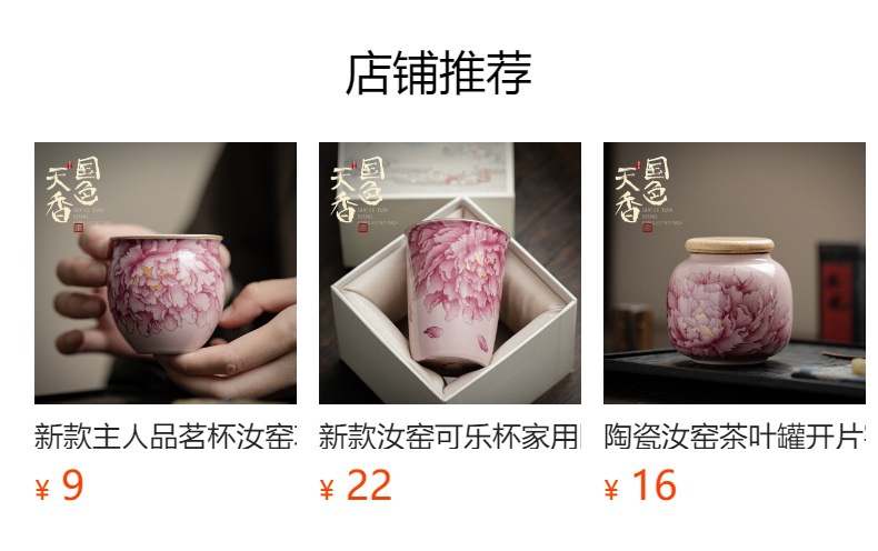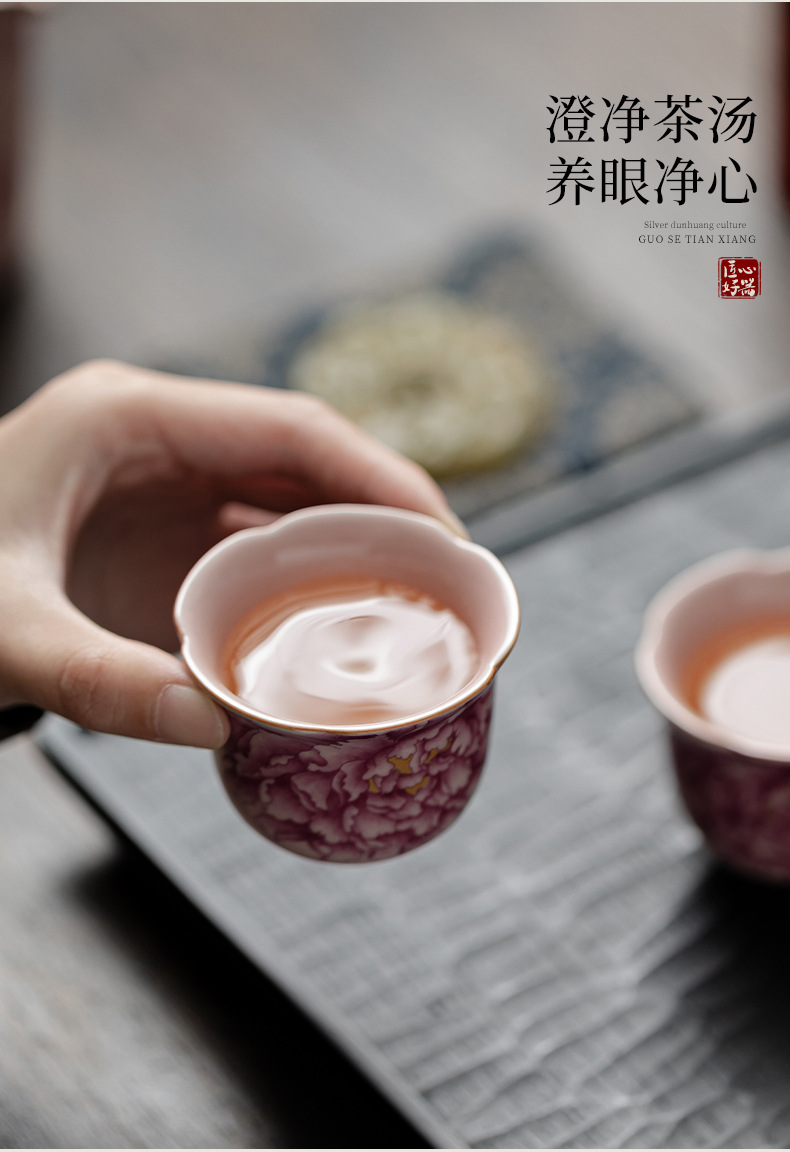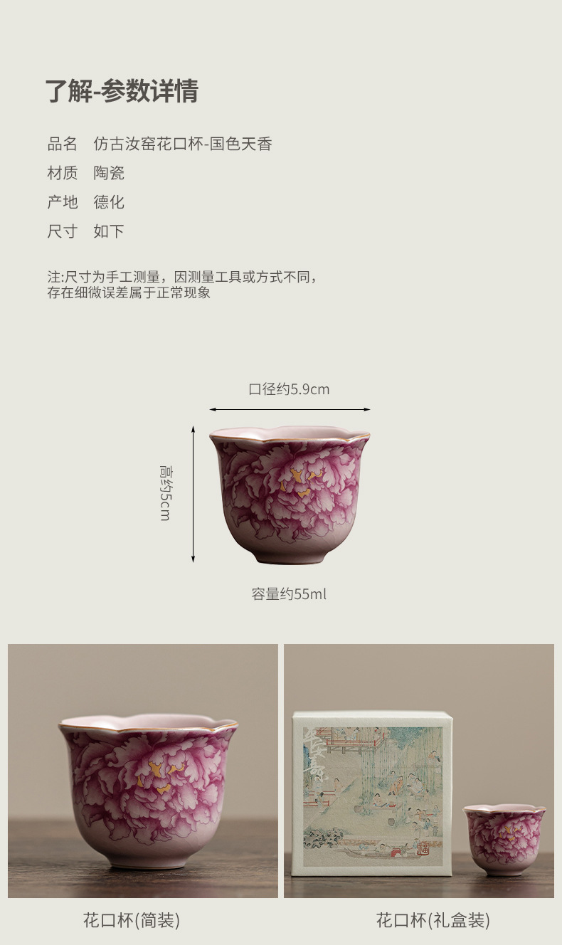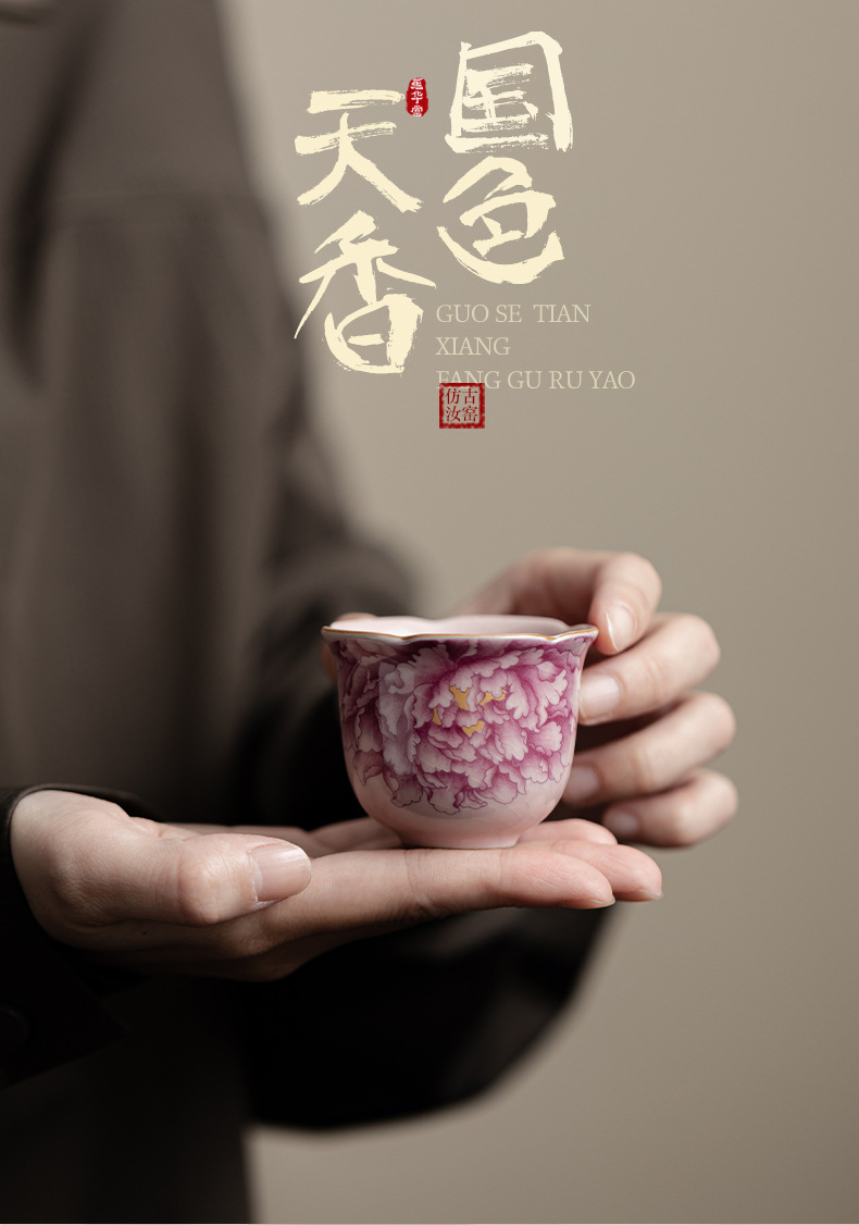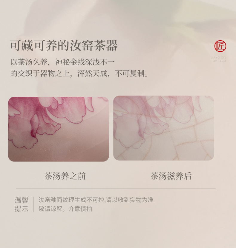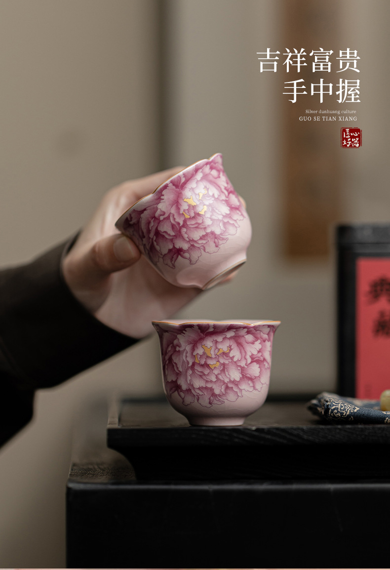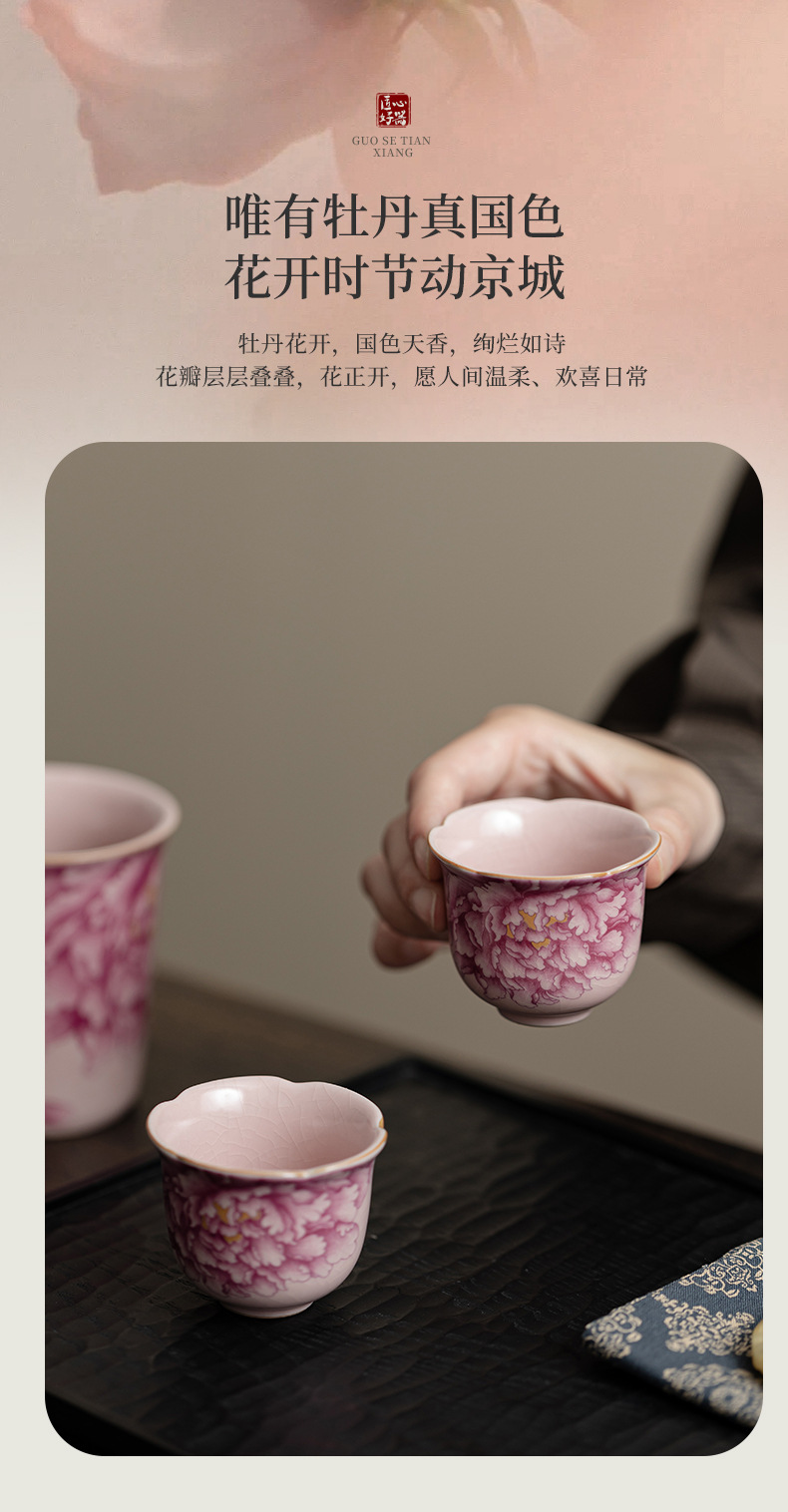 景徳鎮牡丹粉汝茶杯陶磁器茶器開片主人杯客杯品茗杯家庭用工夫茶器