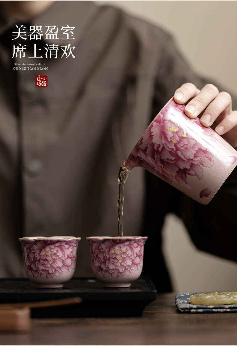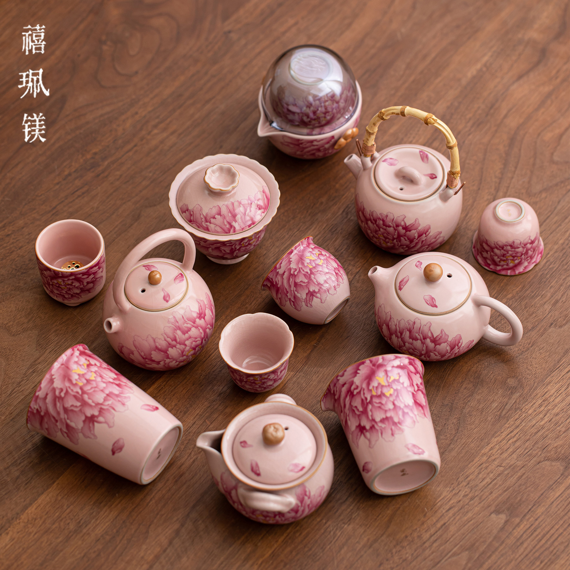 禧マグネシウムピンク汝窯牡丹カンフー茶器全集ティーポット蓋碗提梁壺陶磁器主人杯品茗杯