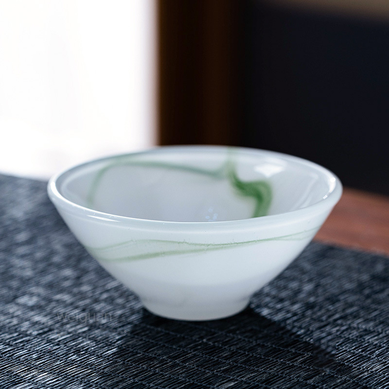 羊の脂の玉の磁器の白菜の杯の百財の杯の工夫のお茶の杯のセットの家庭用品の茗杯の陶磁器のアイデアの茶器はトランペットを詰めます。