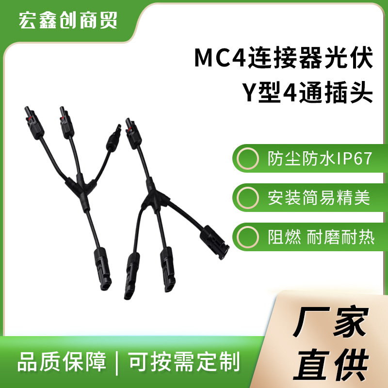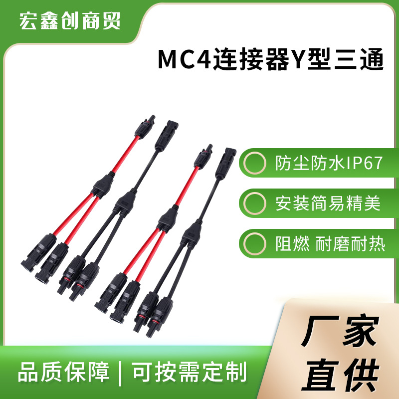 MC4コネクタy型三方太陽光パネル並列防水2回転1アダプタ赤黒線y 2コネクタ