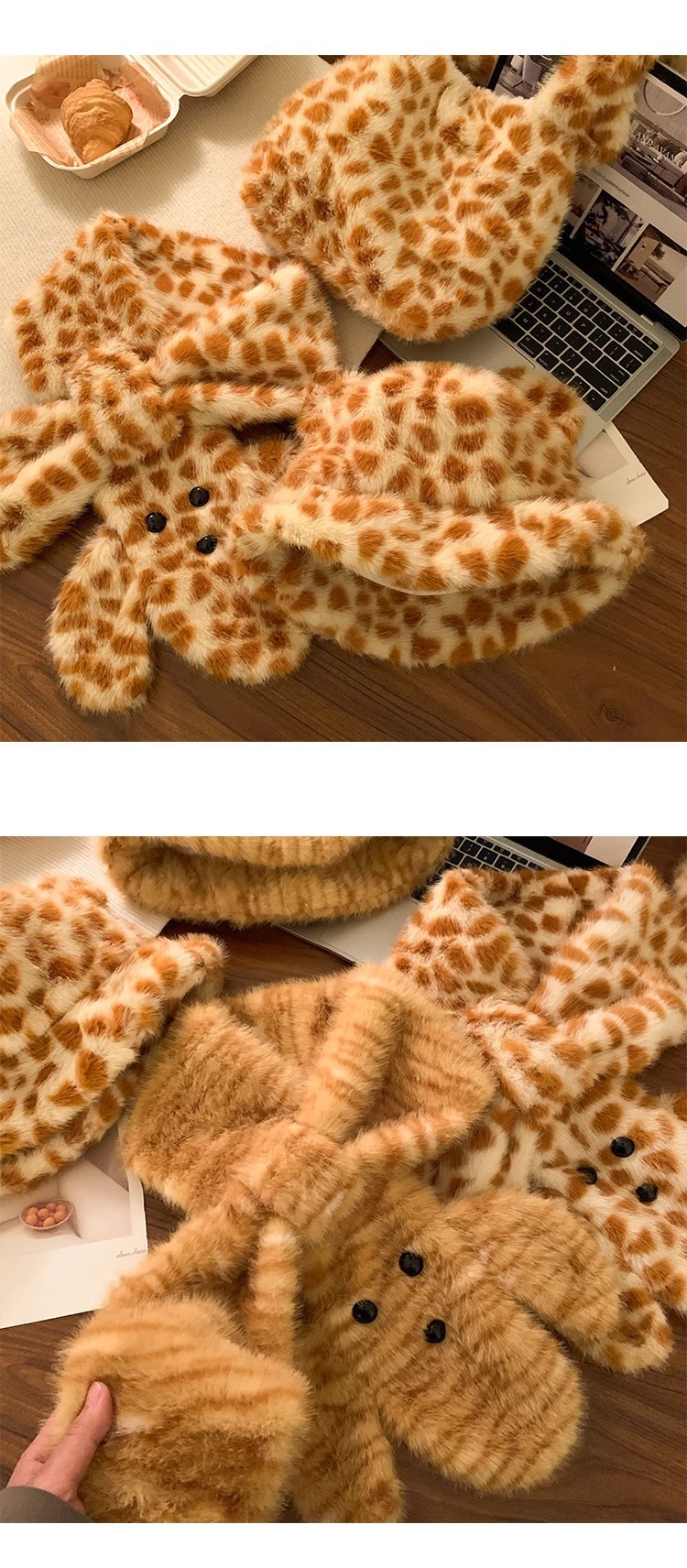 秋冬の女性用ヒョウ柄リトルタイガー漁師帽子、厚くて暖かく、多用途で顔が見える、小学生、大きな頭囲の豪華な盆地帽子