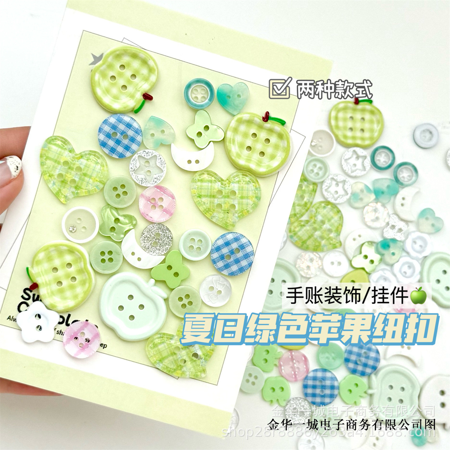 ins风夏日绿色苹果纽扣diy手账装饰素材娃衣配件手作发箍可爱配饰