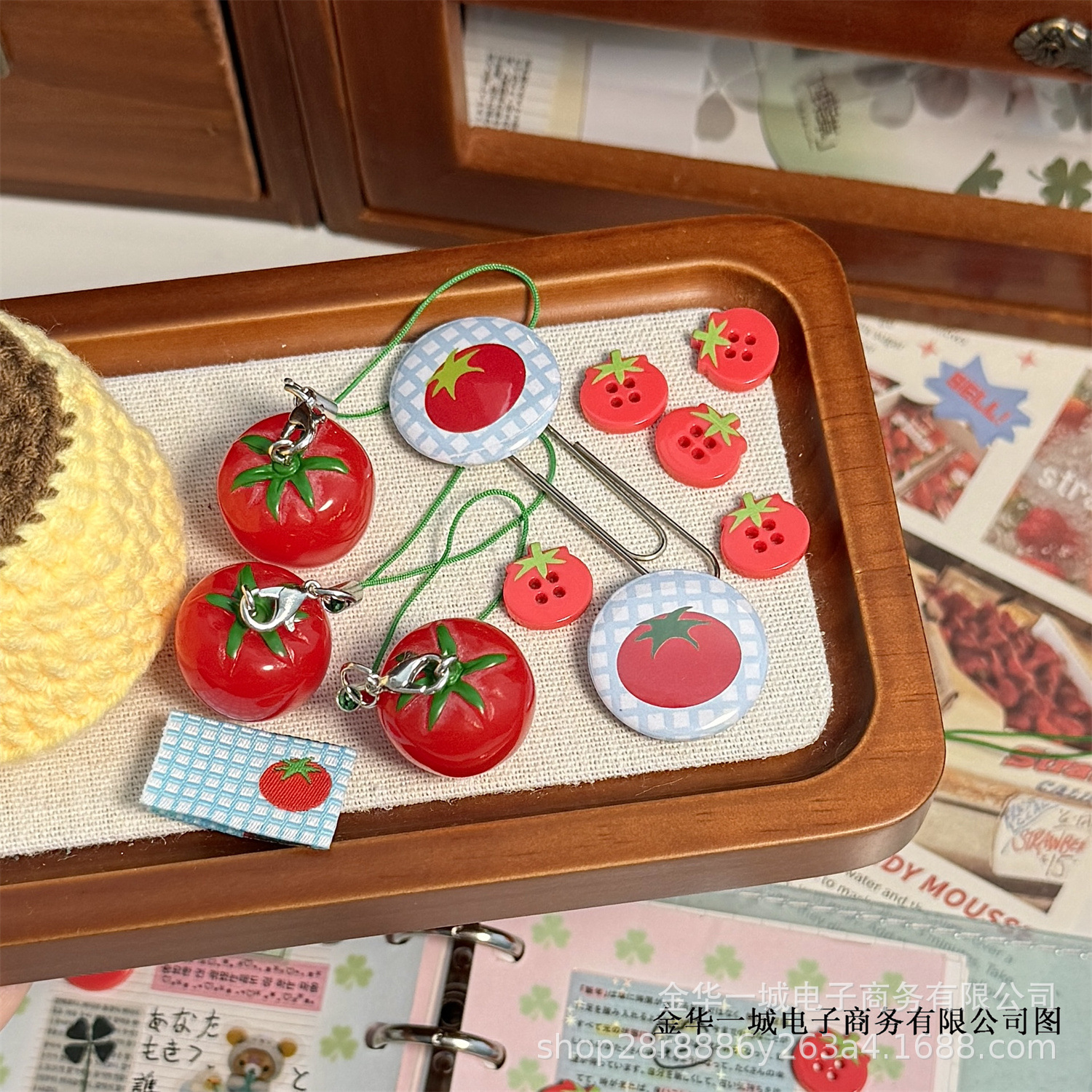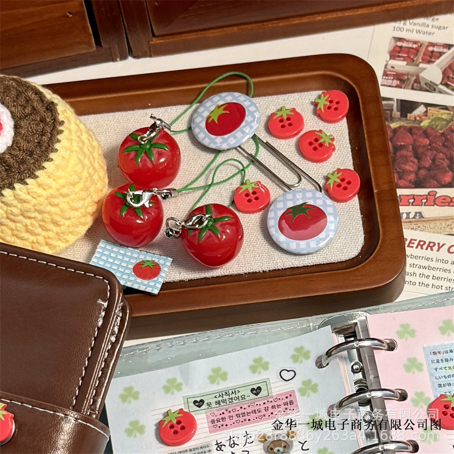 可爱仿真番茄挂件纽扣diy手账装饰素材迷你吧唧回形针多款式配件