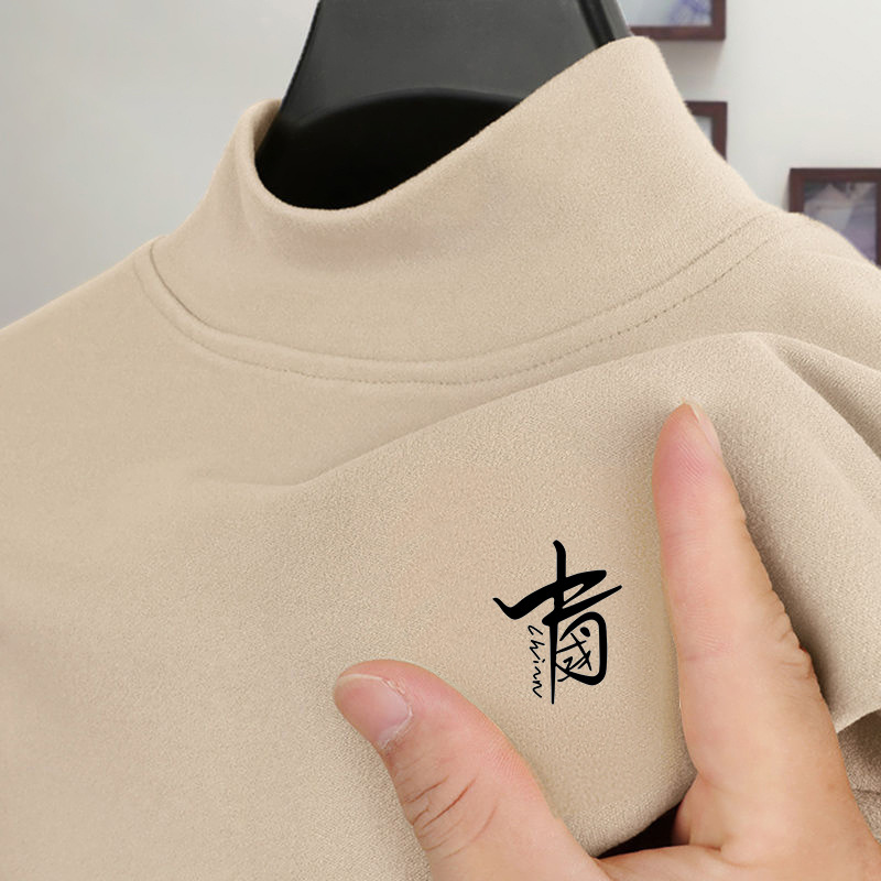 徳絨毛の半高襟の底のシャツの男性の秋のコートのスーツの中にベルベットの成熟した落ち着いた紳士服の長袖のtシャツを掛けます。