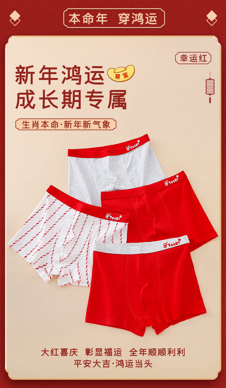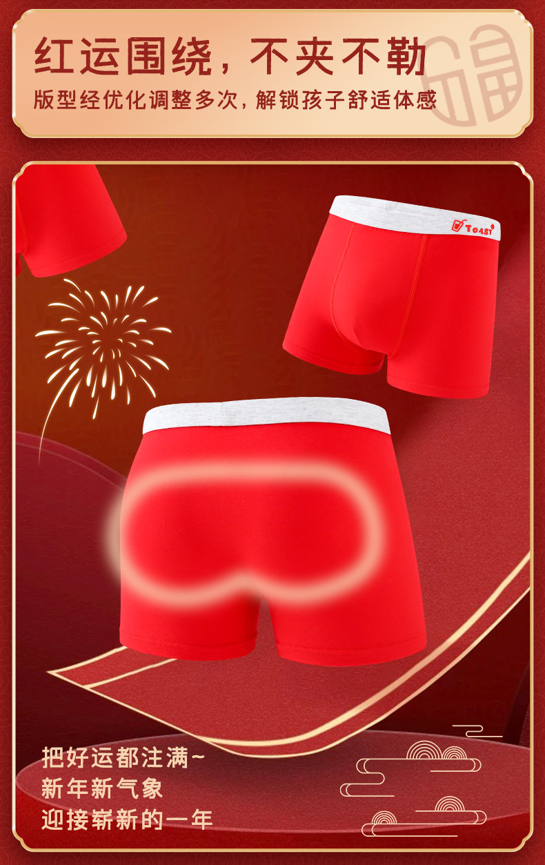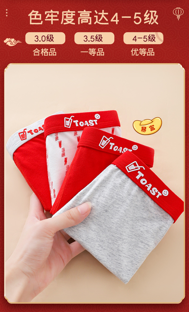 子供の下着の女の子の純綿の大きい赤い新年のお祝いの中国の赤い漫画の抗菌の四角いズボンの小さい女の子の平角のズボン