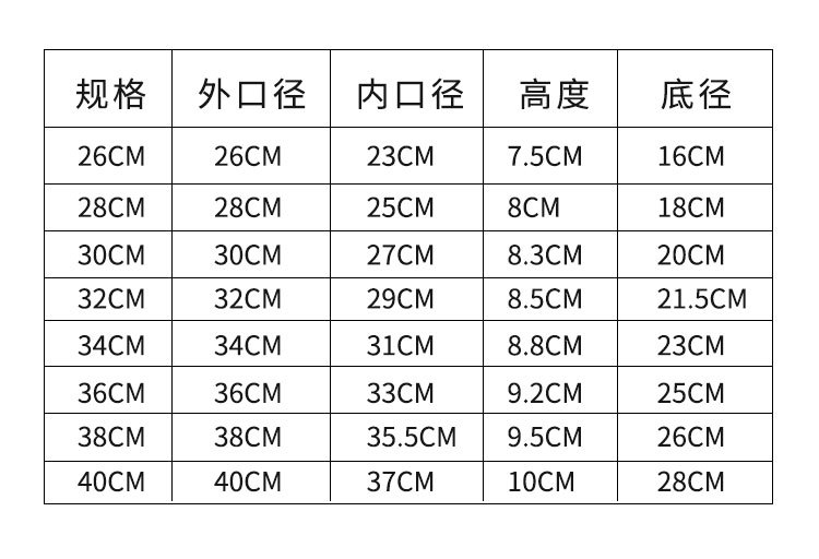 24cm,26cm,28cm,30cm,32cm,34cm,36cm,38cm,40cm
