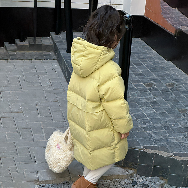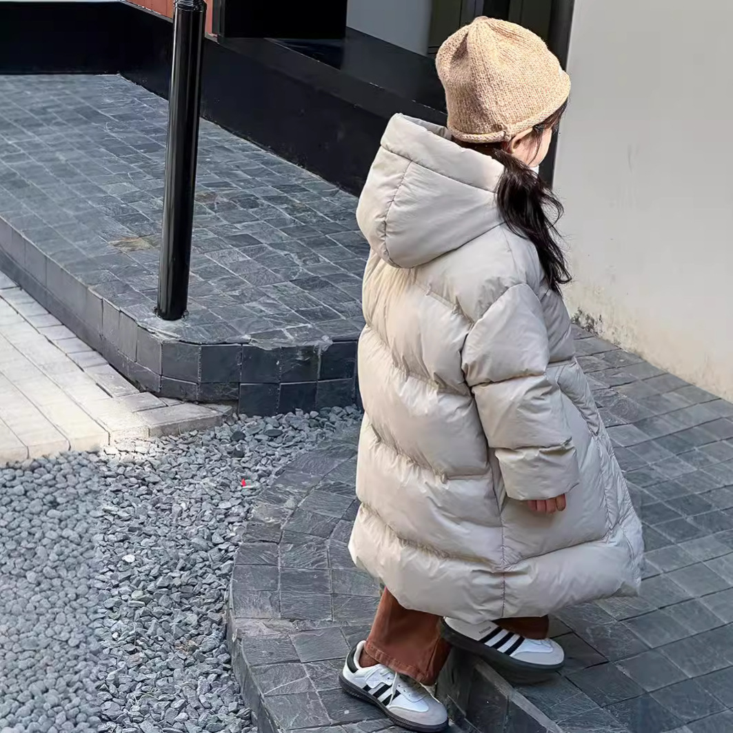 女の子用ミドル丈服、子供用フード付きジャケット、中高生向け冬服、厚手で暖かい、おしゃれな韓国風、ライブ配信