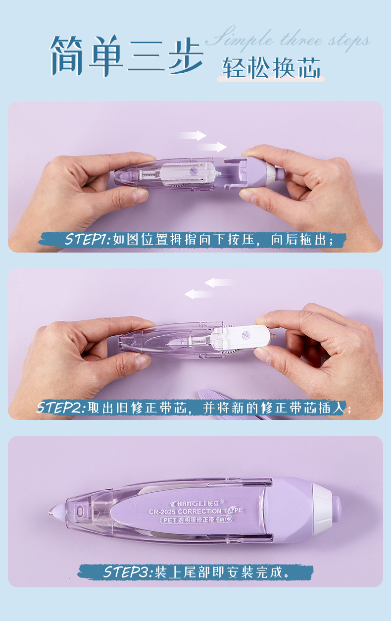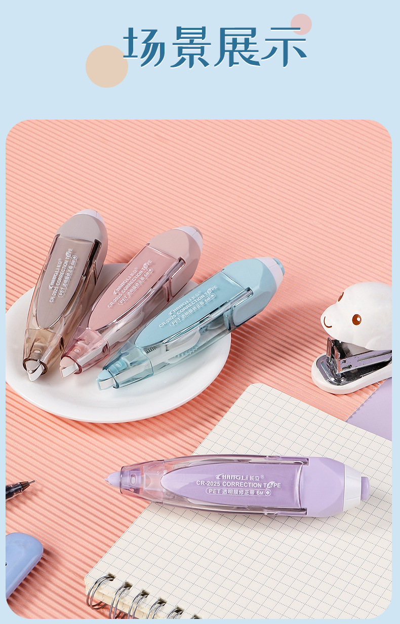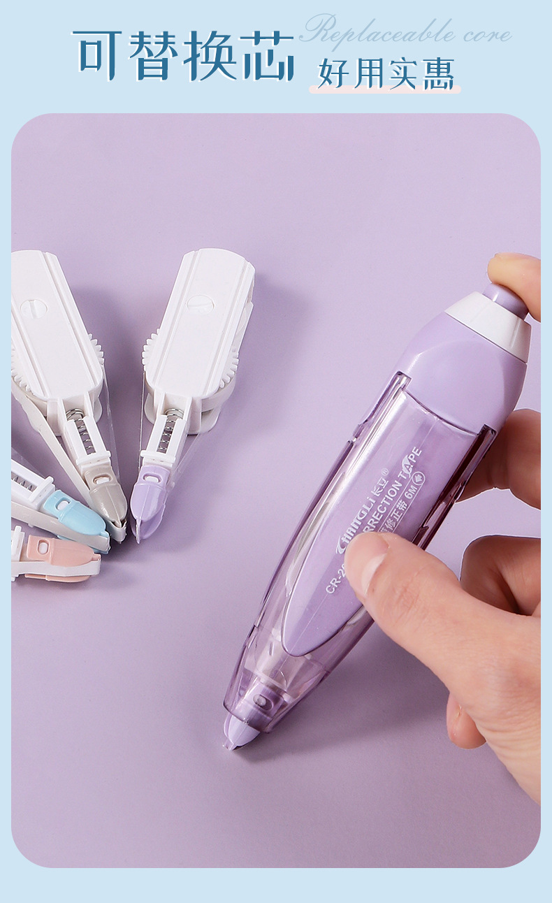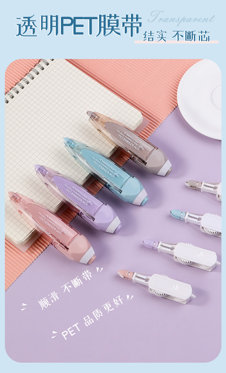 スモーク色押し修正テープ学生大容量塗り替えテープ付携帯型フィルムテープ替え可能芯修正テープ