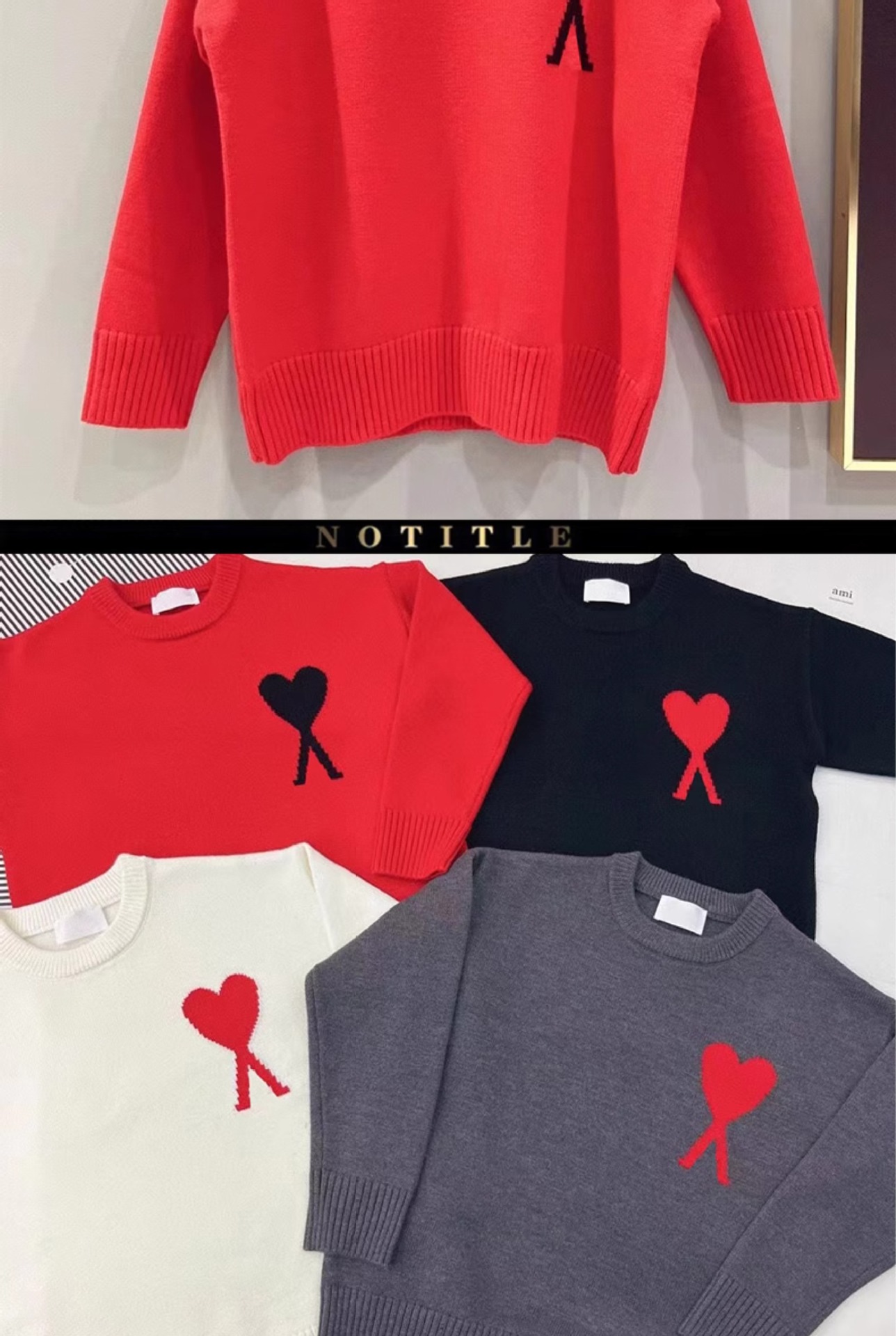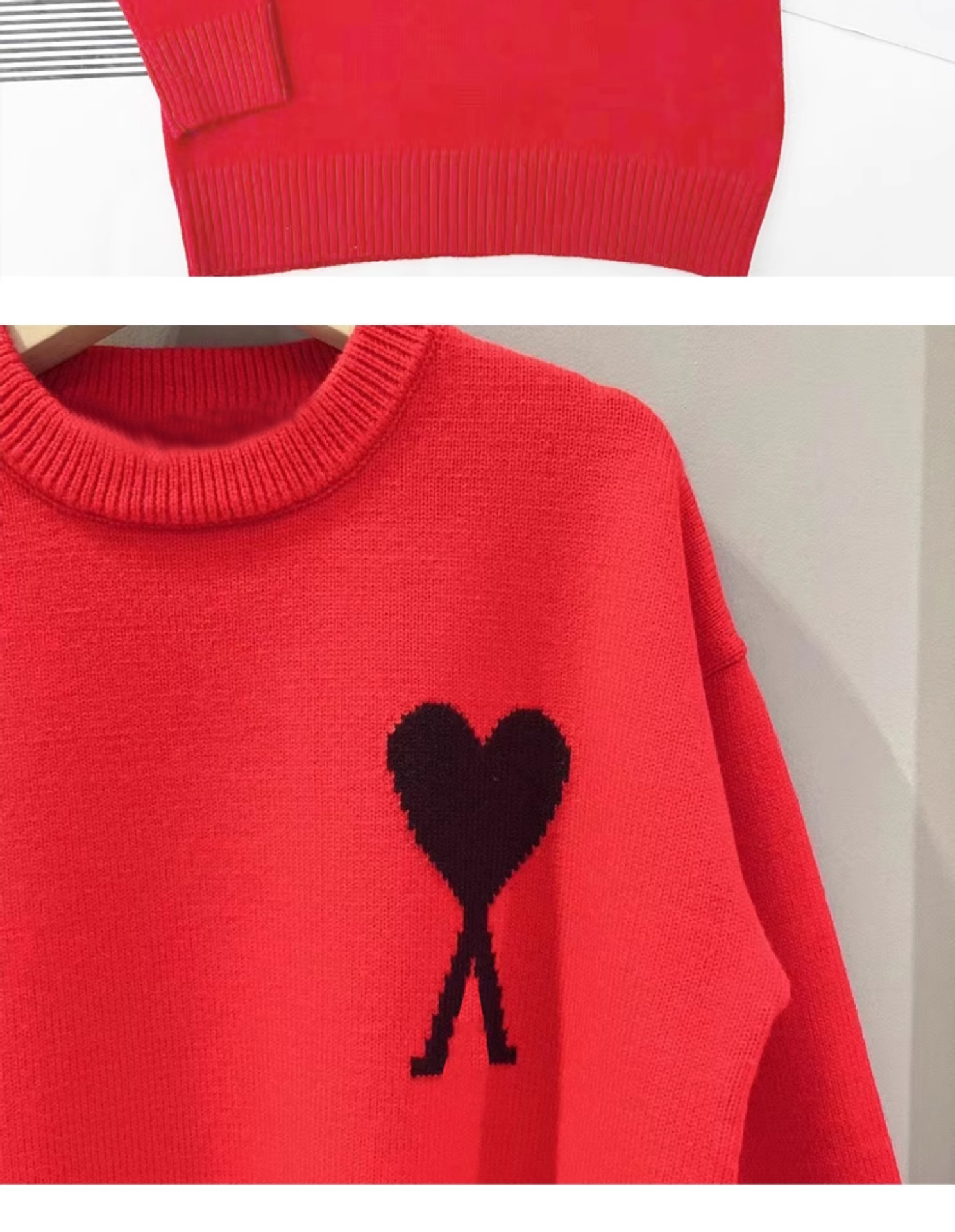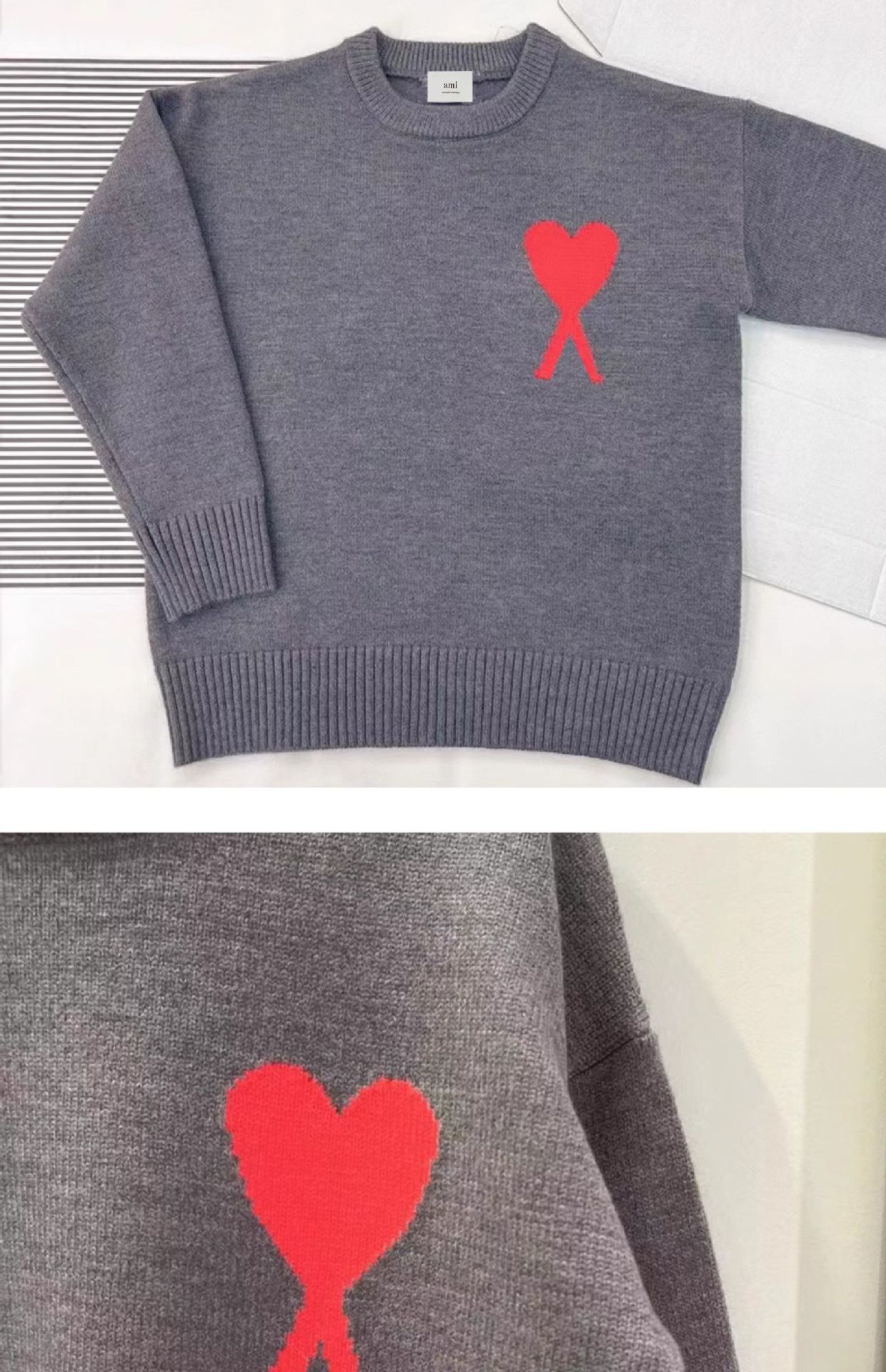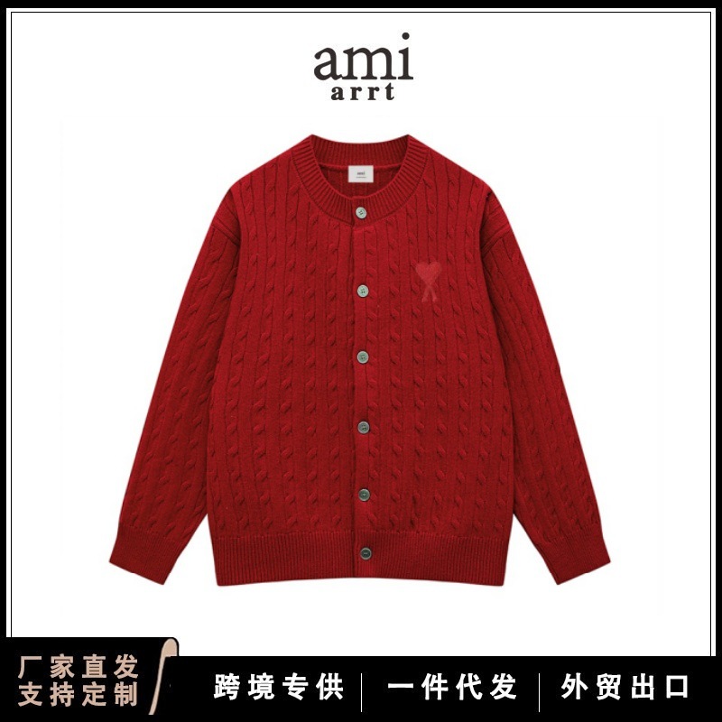 AMI&EASY スポットトレンディブランドビッグラブジャカードラウンドネックメンズセーター秋冬暖かく快適なルーズ