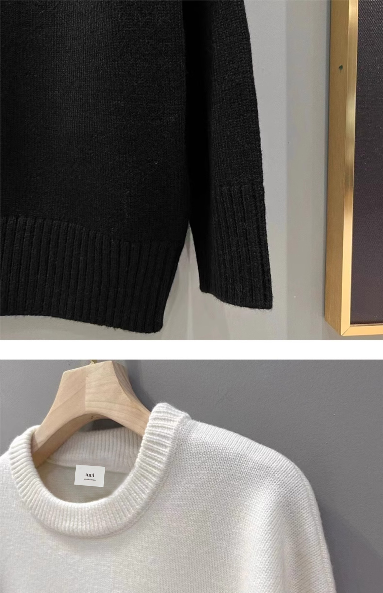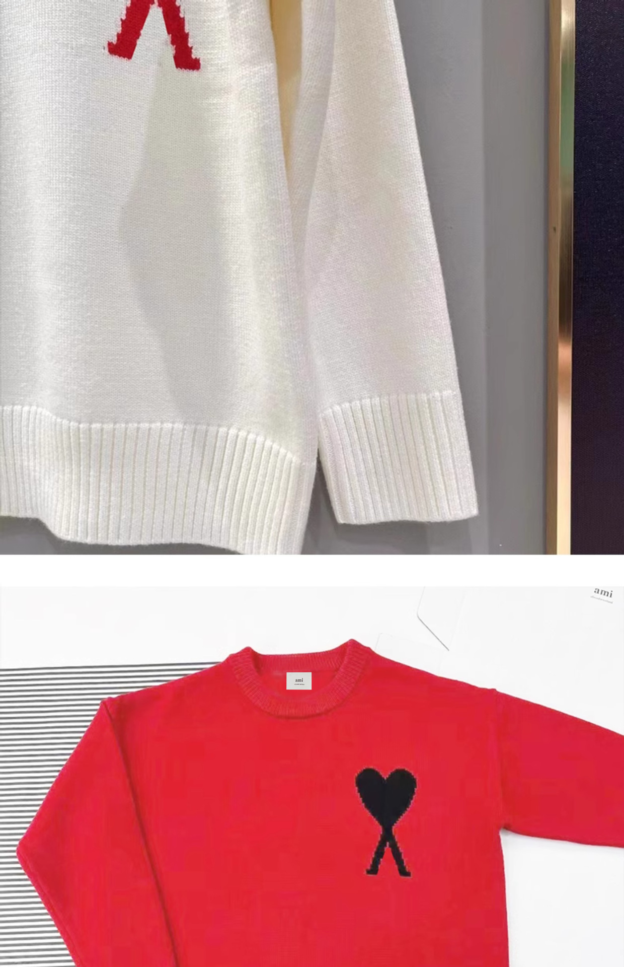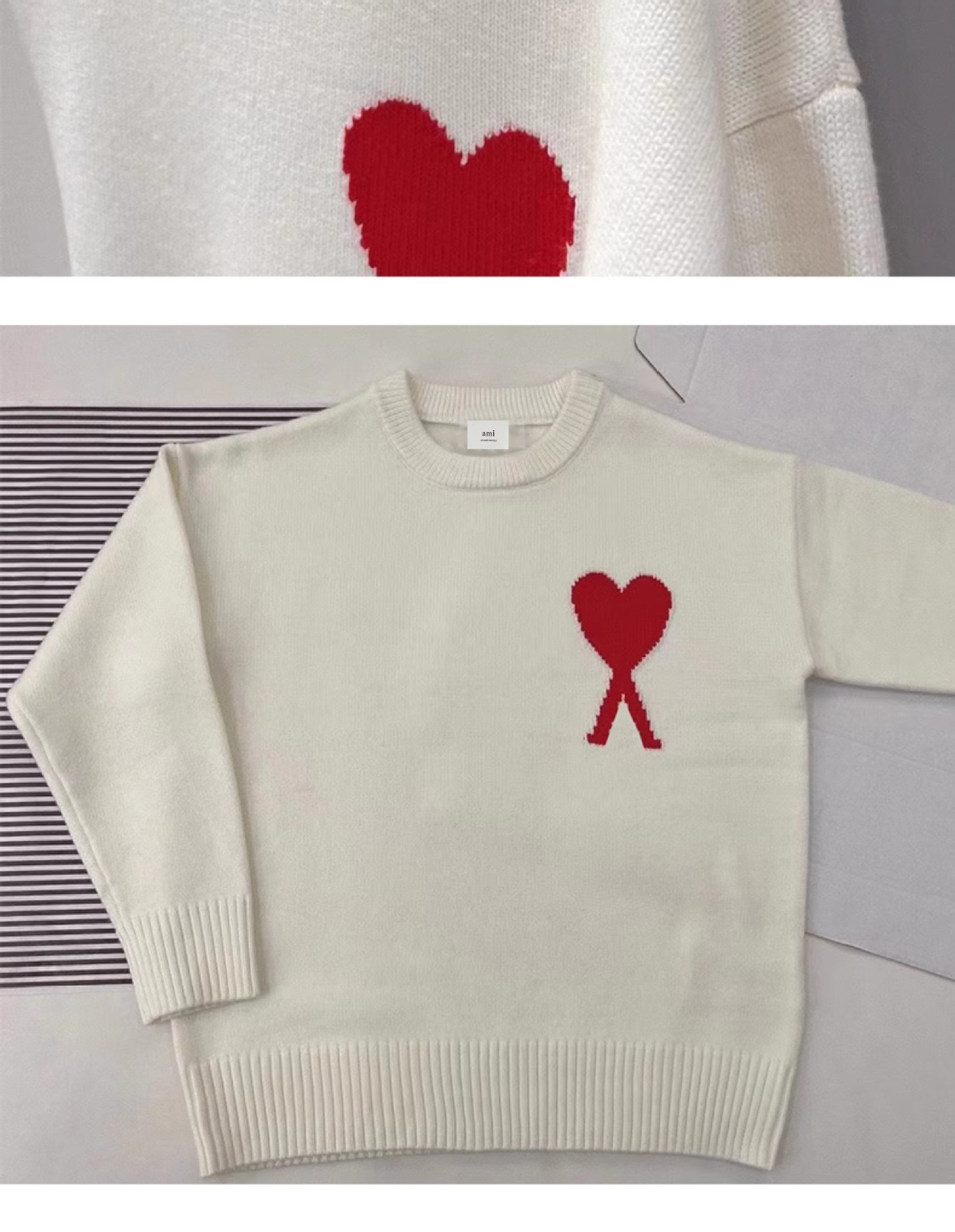 秋冬新作高襟愛セーター男女ストライプ青年桃心AMI CLAMSカジュアルプルオーバーニット