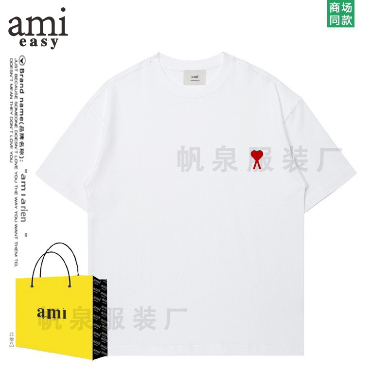 AMI&EASY 新しい小さな愛の刺繍ルーズオフショルダースリーブ夏のトレンディなブランドファッション半袖トップ高品質