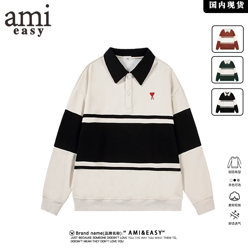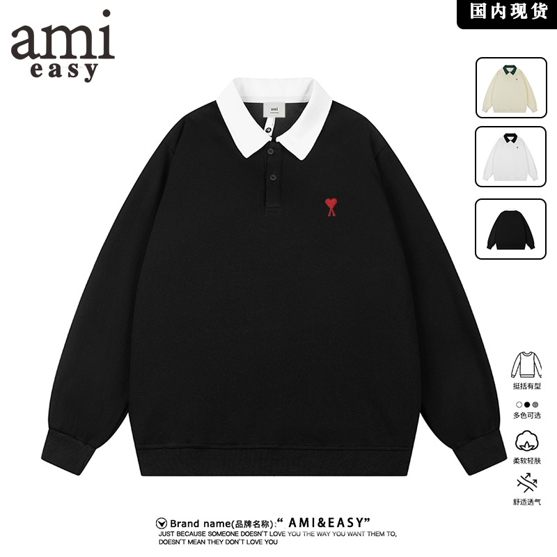 AMI&EASY ドロップシッピングコントラストカラーケース刺繍メンズスウェットシャツ快適で多用途のトレンディなファッションカジュアルトップ