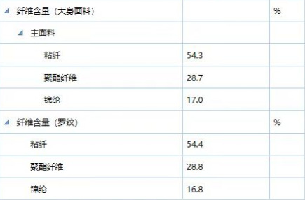 主な生地成分の含有量 54.3%