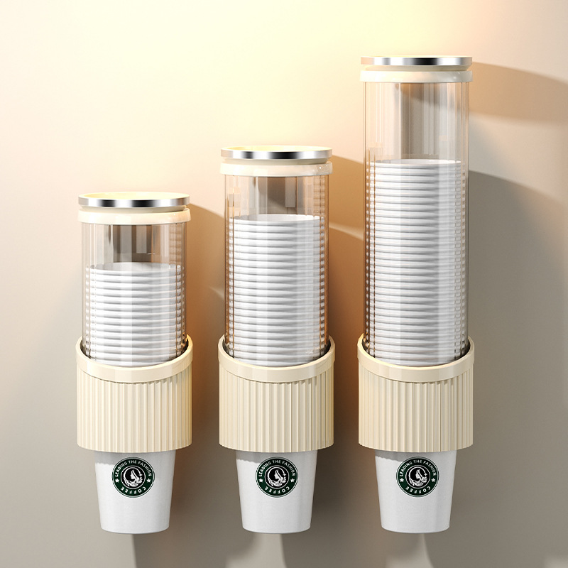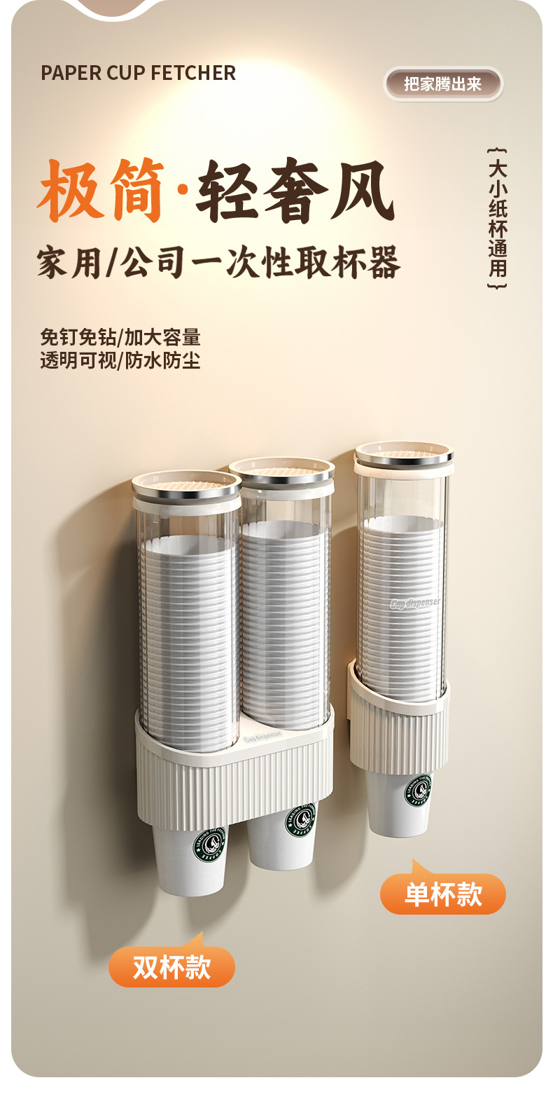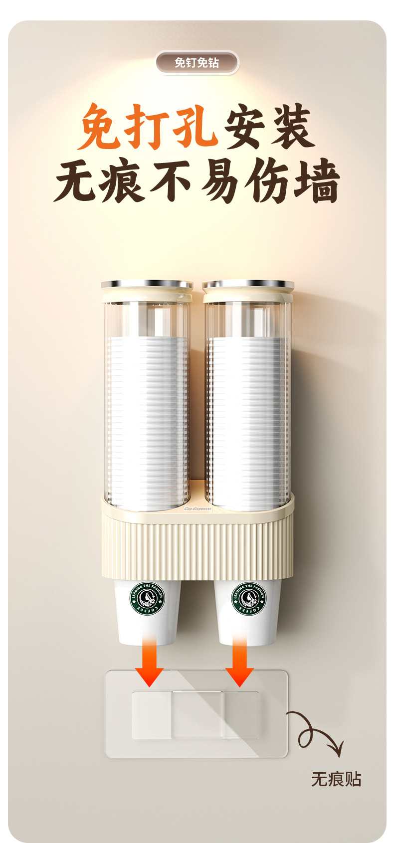 使い捨てコップ自動カップ取り出し器穴なし壁掛け式家庭用浄水器二重筒紙コップ収納棚