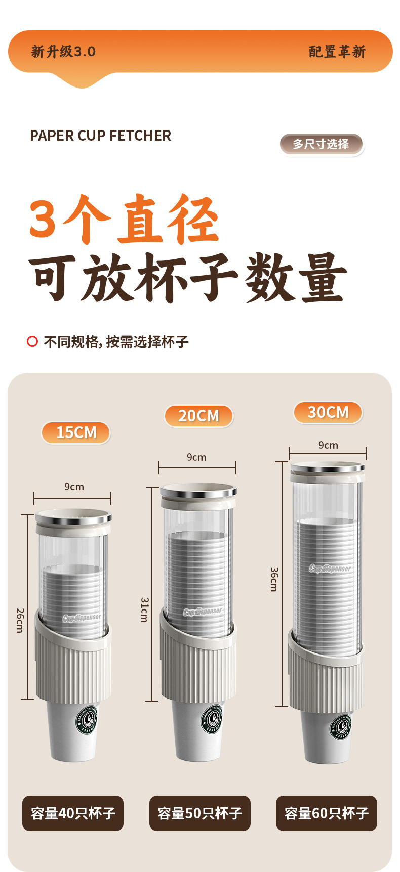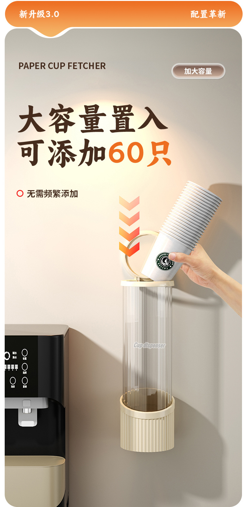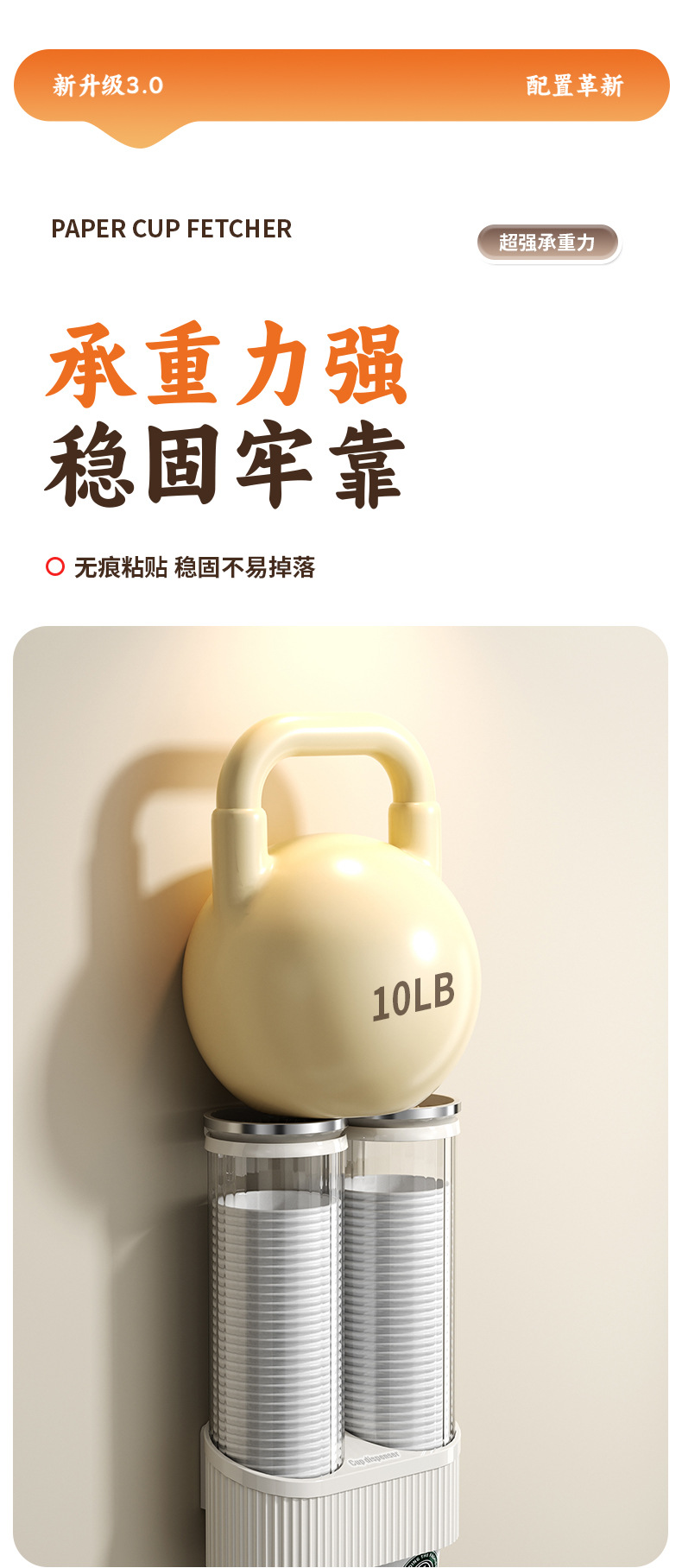 使い捨てコップ自動カップ取り出し器穴なし壁掛け式家庭用浄水器二重筒紙コップ収納棚