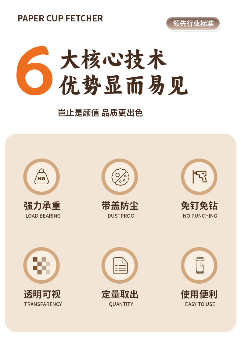 使い捨てカップカップ取り出し器大口径穴なし冷水機自動紙コップ透明壁掛け棚