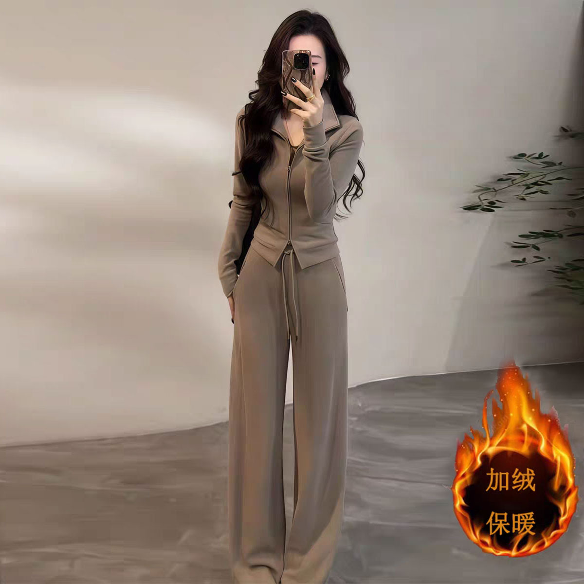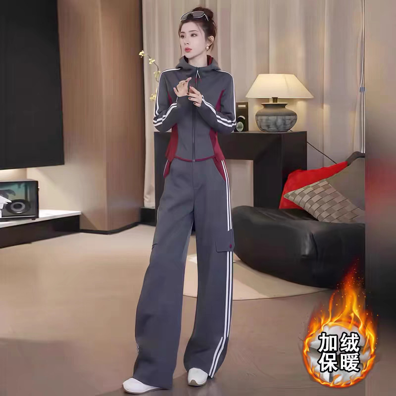 韩系休闲运动套装女2025新款秋冬加绒加厚减龄显瘦外套卫衣两件套