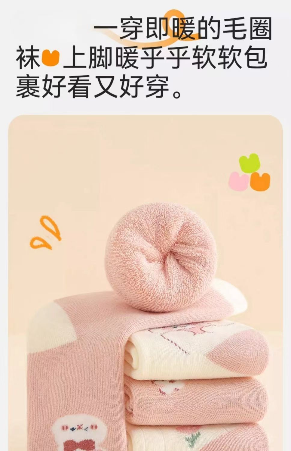 子供の靴下の卸売りは秋冬に毛輪を厚くして保温します。