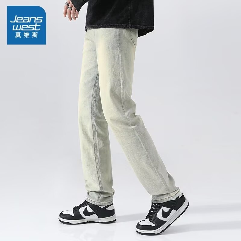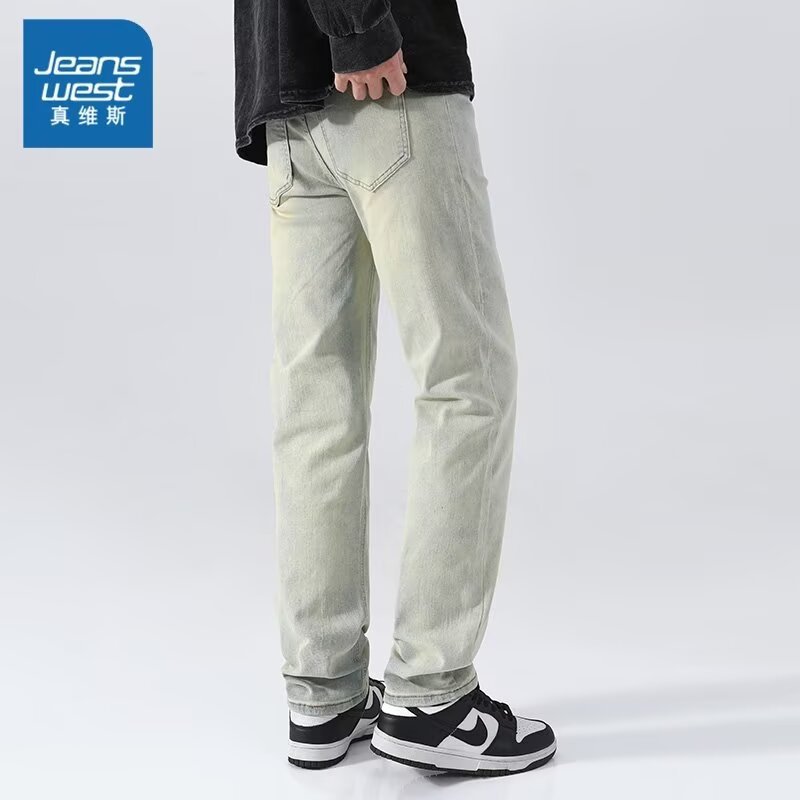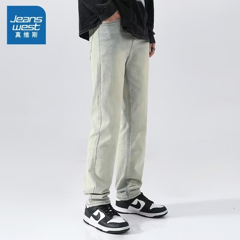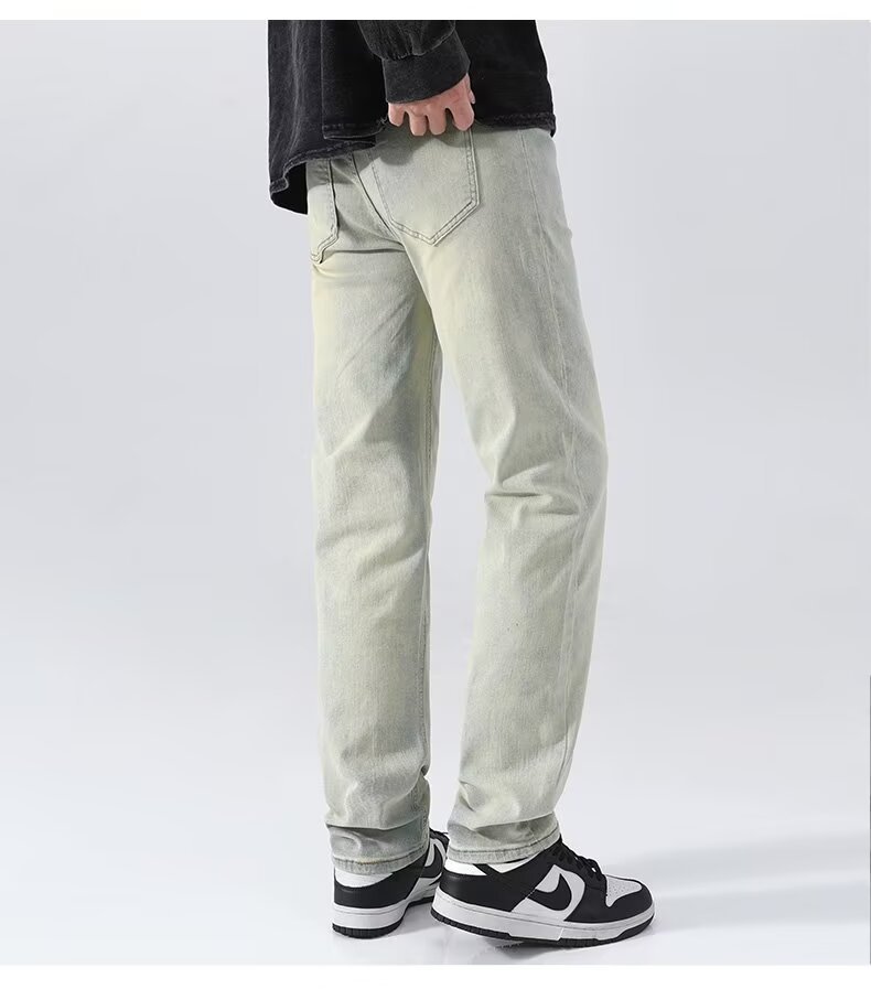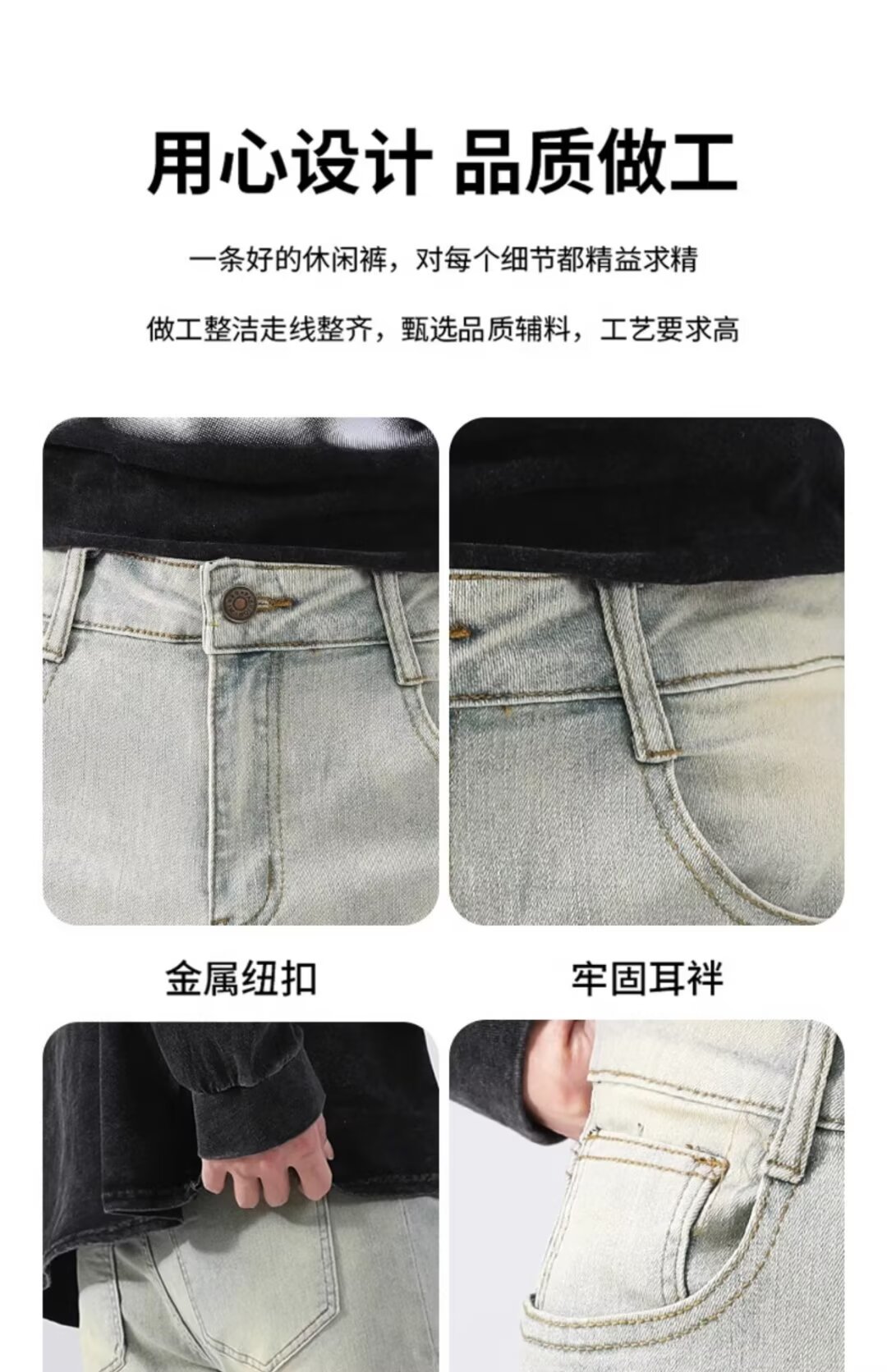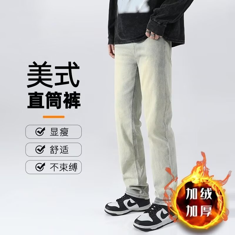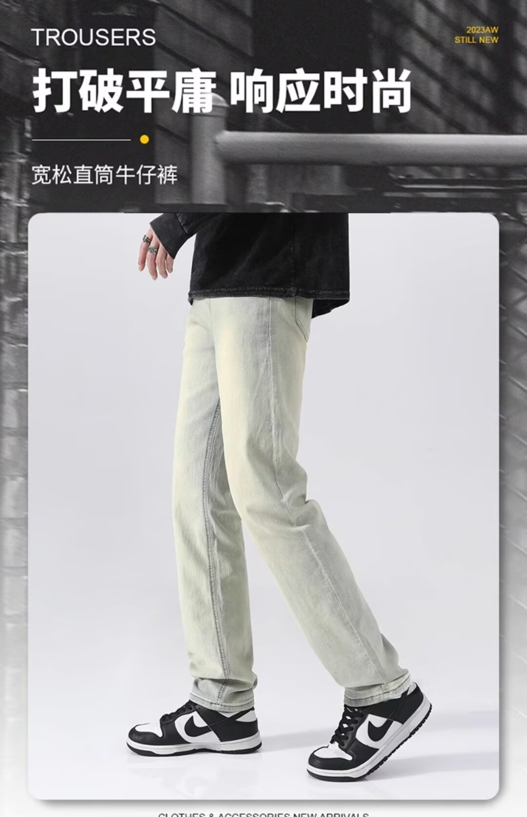 黄泥染とベルベットのジーンズの男性モデル2024秋冬の新型アメリカのゆるいストレートジーンズ卸売り