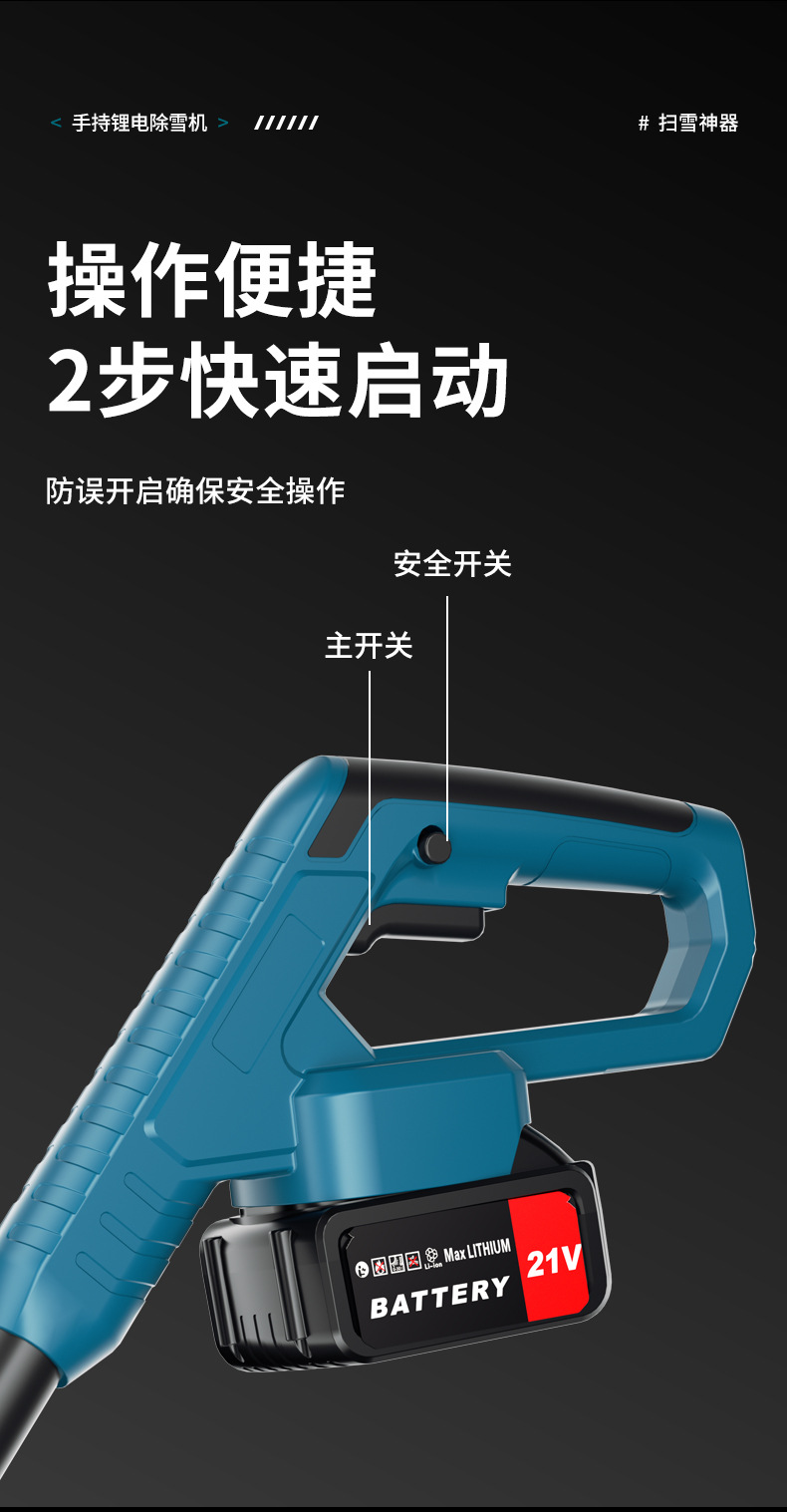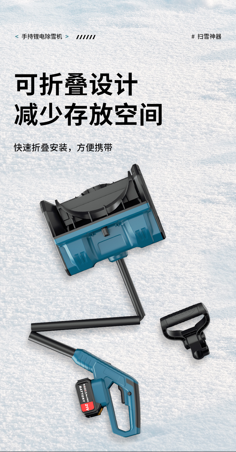 21Vリチウム電気三折り畳みスプライシング除雪機取り外し可能で便利な電気除雪機家庭用携帯除雪機